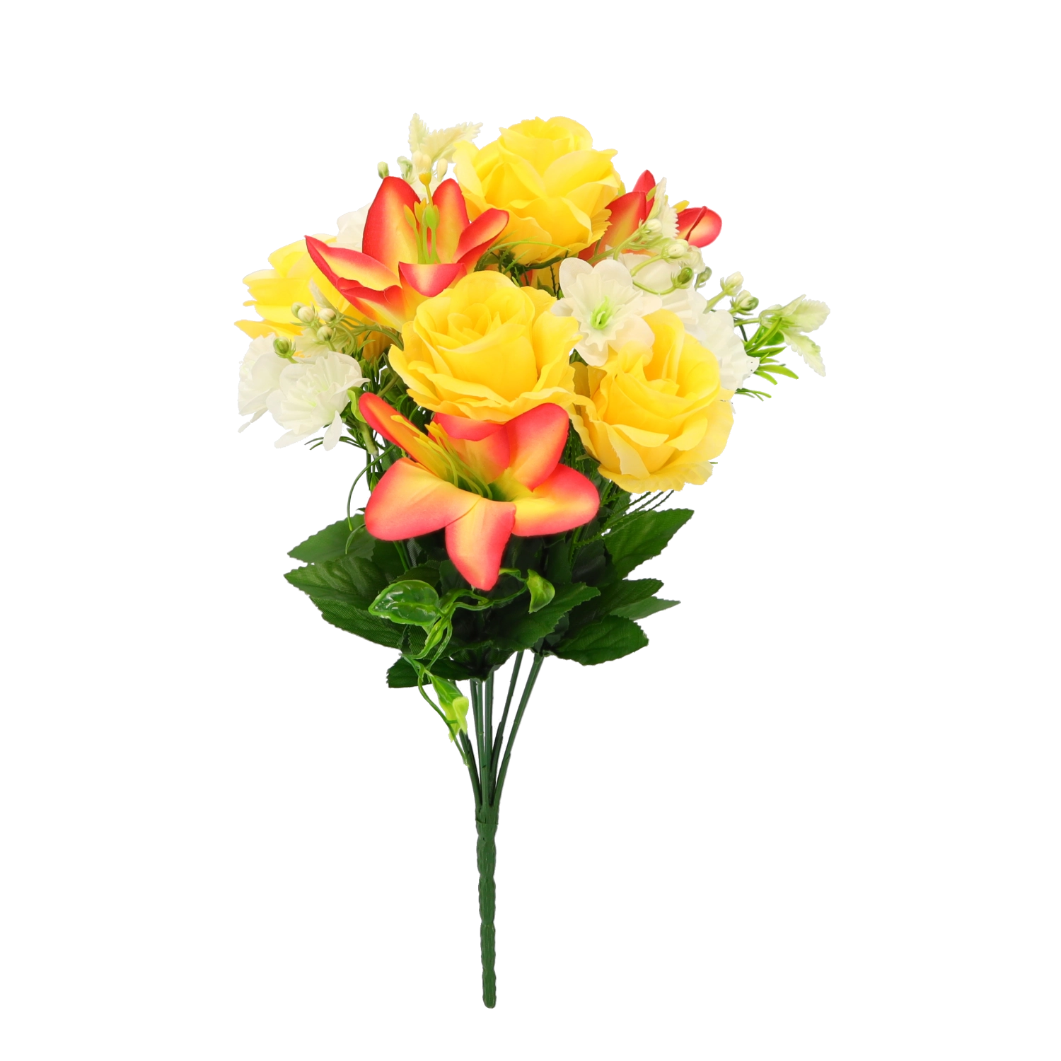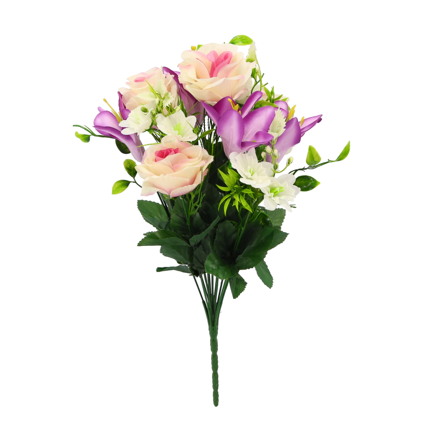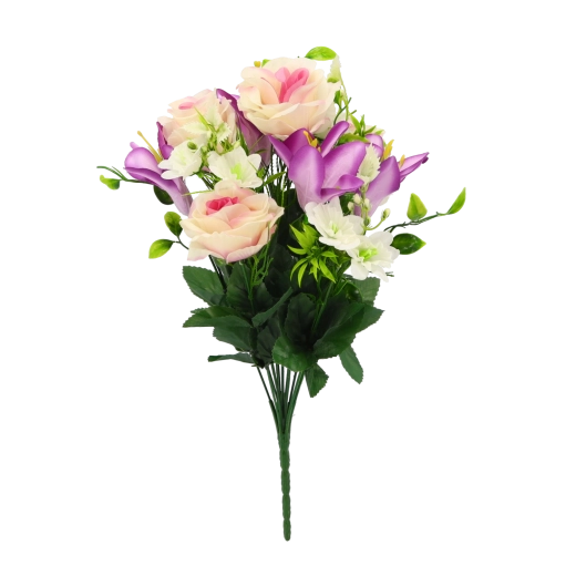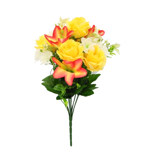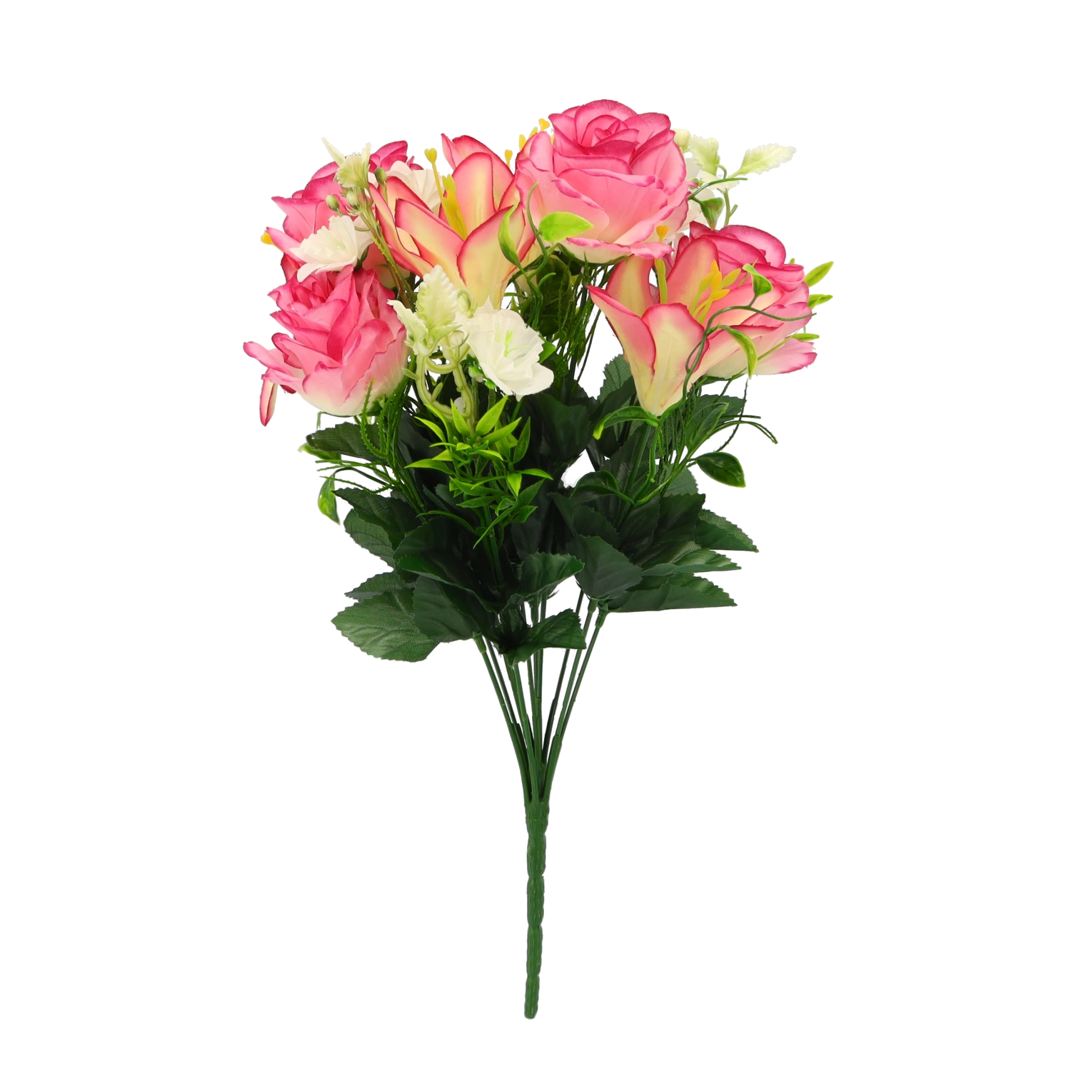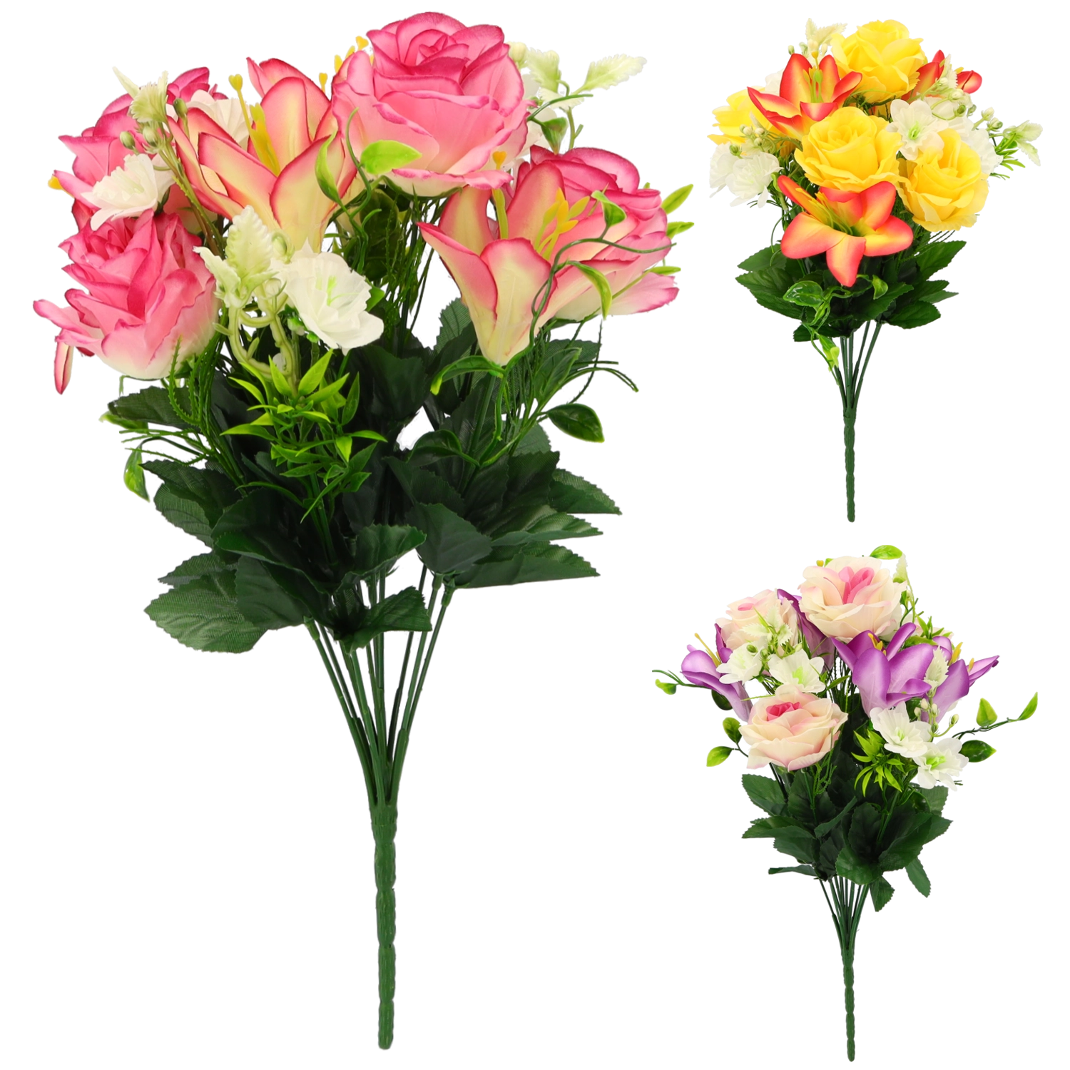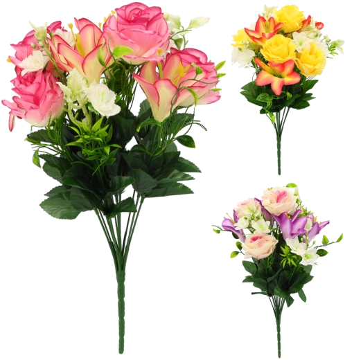 Stilfuld kunstig buket, der kombinerer klassiske roser og elegante liljer med fyldig grønt. Med målene 43 × 25 × 25 cm og i et mix af farver virker den naturlig og frisk året rundt. Realistiske detaljer, holdbare materialer og ingen vedligeholdelse gør den til den perfekte dekoration til stue, soveværelse, kontor og reception.