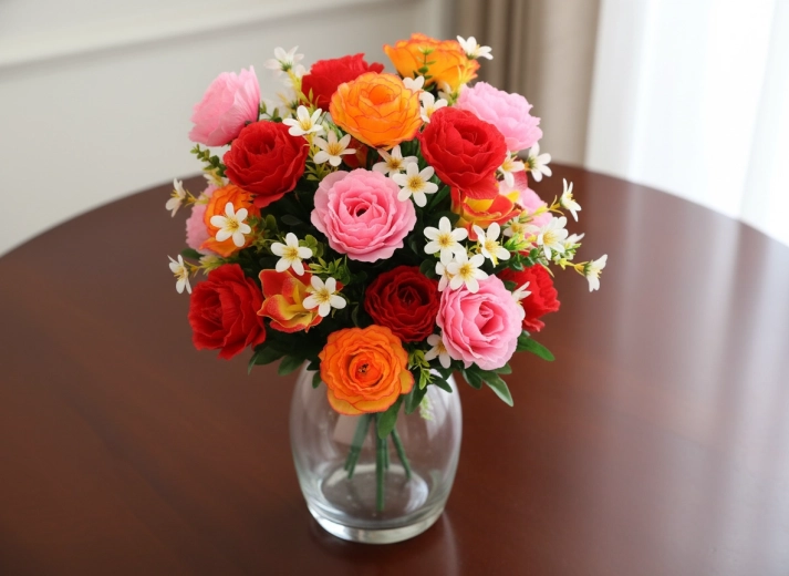 Buketten kræver hverken vanding eller særlig pleje og forbliver smuk hele året – ideel til travle hjem og kommercielle miljøer.