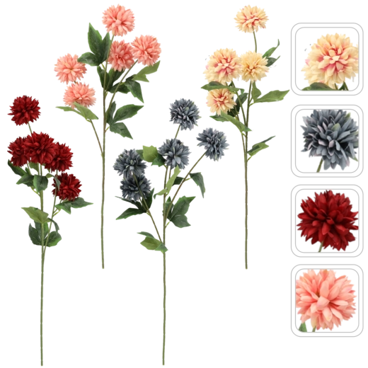 Elegant kunstig chrysantemgren med fem fyldige blomster, 71 cm høj, i et mix af farver. Et fremragende valg til langtidsholdbar dekoration uden vedligeholdelse, ideel til vaser, arrangementer og bryllupsudsmykning. Det realistiske udtryk og bestandige farver giver interiøret friskhed året rundt.