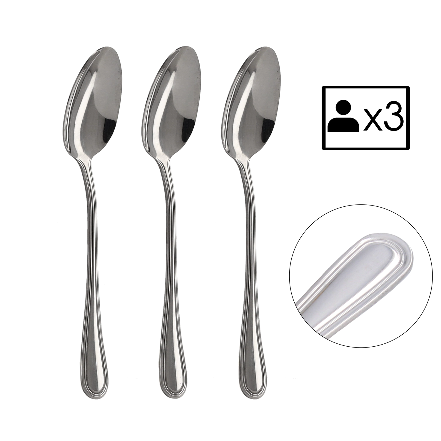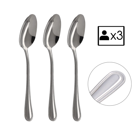 Den praktiske pakke med 3 stk. er ideel til at supplere et eksisterende sæt eller som en hurtig løsning til mindre husholdninger. Skeer­ne har afbalanceret vægt og ligger behageligt i hånden, hvilket gør borddækningen komfortabel og stilfuld.