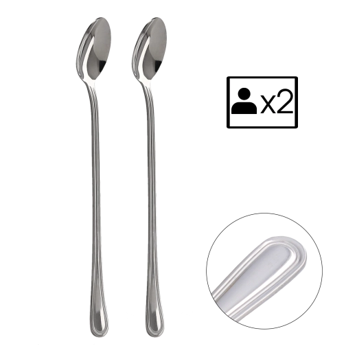 Elegant sæt med to barsskeer London, som vil glæde både kaffe- og dessertelskere. Med en længde på 19,7 cm er de ideelle til at røre drikke i høje glas, såsom latte, og til servering af desserter i høje glas. Fremstillet af rustfrit stål af høj kvalitet med blank overflade for holdbarhed, lang levetid og nem vedligeholdelse i opvaskemaskinen.
