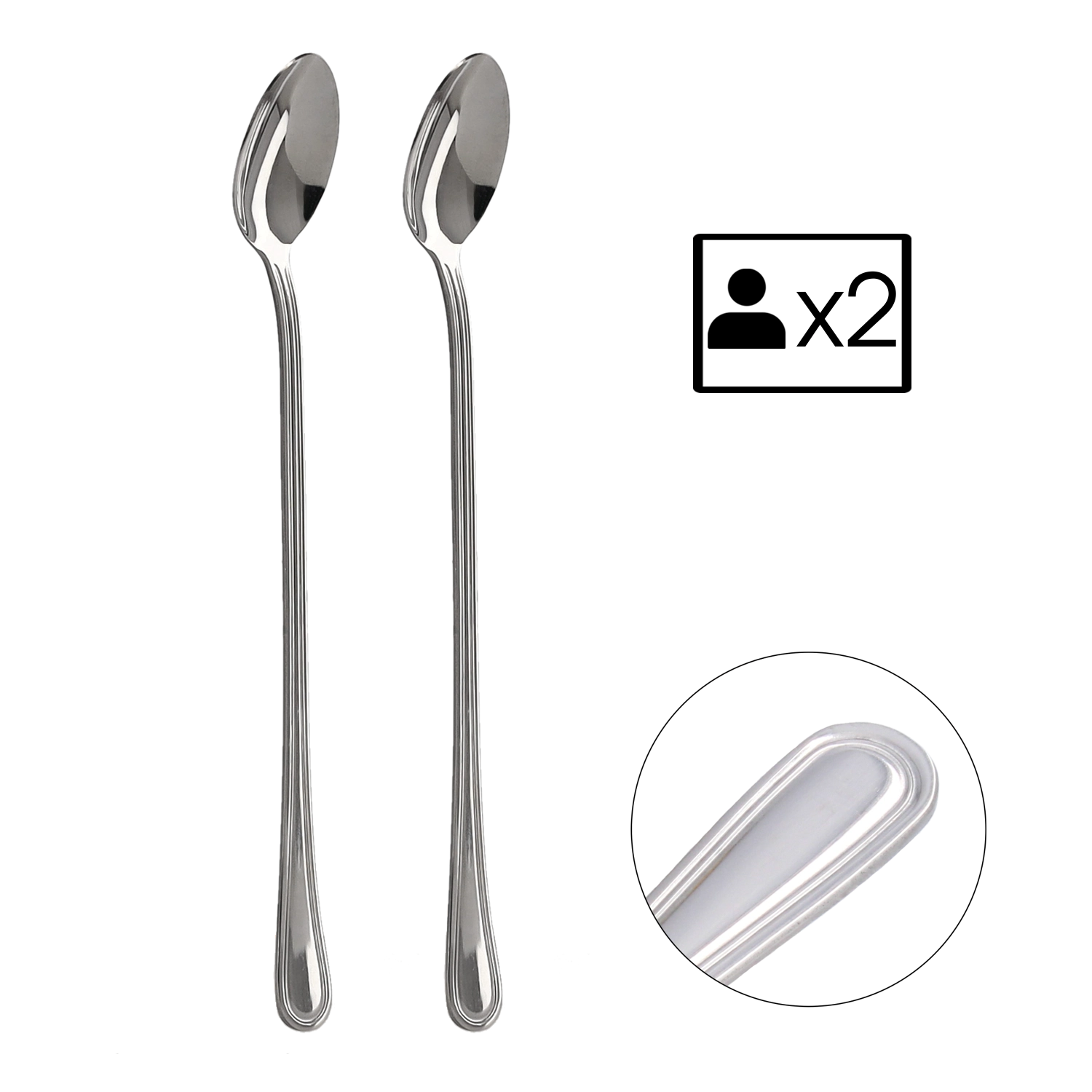 Sættet med barsskeer London kombinerer praktisk anvendelse og moderne elegance. Den forlængede længde på 19,7 cm gør det nemt at røre drikke i høje glas, tilberede latte eller iced coffee og bekvemt servere desserter i høje glas.