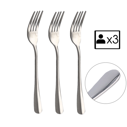 Opdag et praktisk sæt med 3 gafler i førsteklasses rustfrit stål. Classic-kollektionen forener enkelhed og elegance – den glatte udførelse uden mønstre passer perfekt til enhver borddækning.