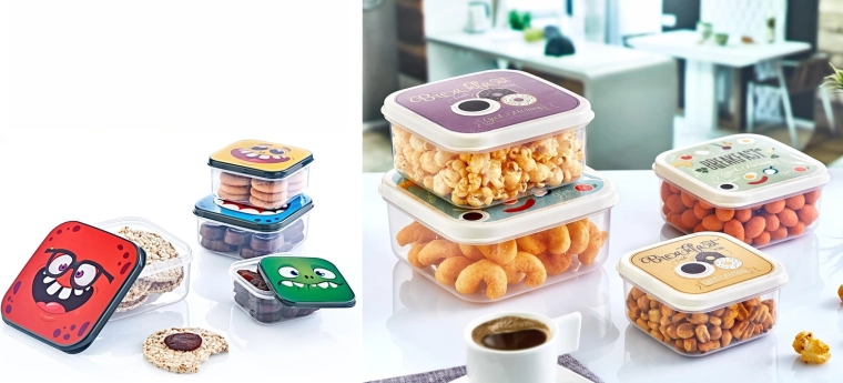 De forskellige størrelser gør det nemt at opdele frugt, grøntsager, brød eller ost på en smart måde. Den tætte lukning hjælper med at begrænse spredning af aromaer og holde maden frisk i længere tid. Vælg lågmotiv efter dit barns smag og forvandl hver snack til en lille glæde.
