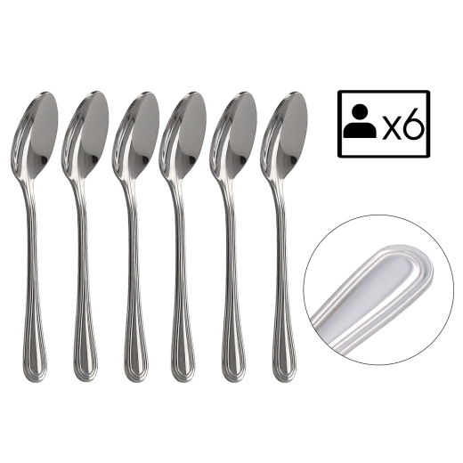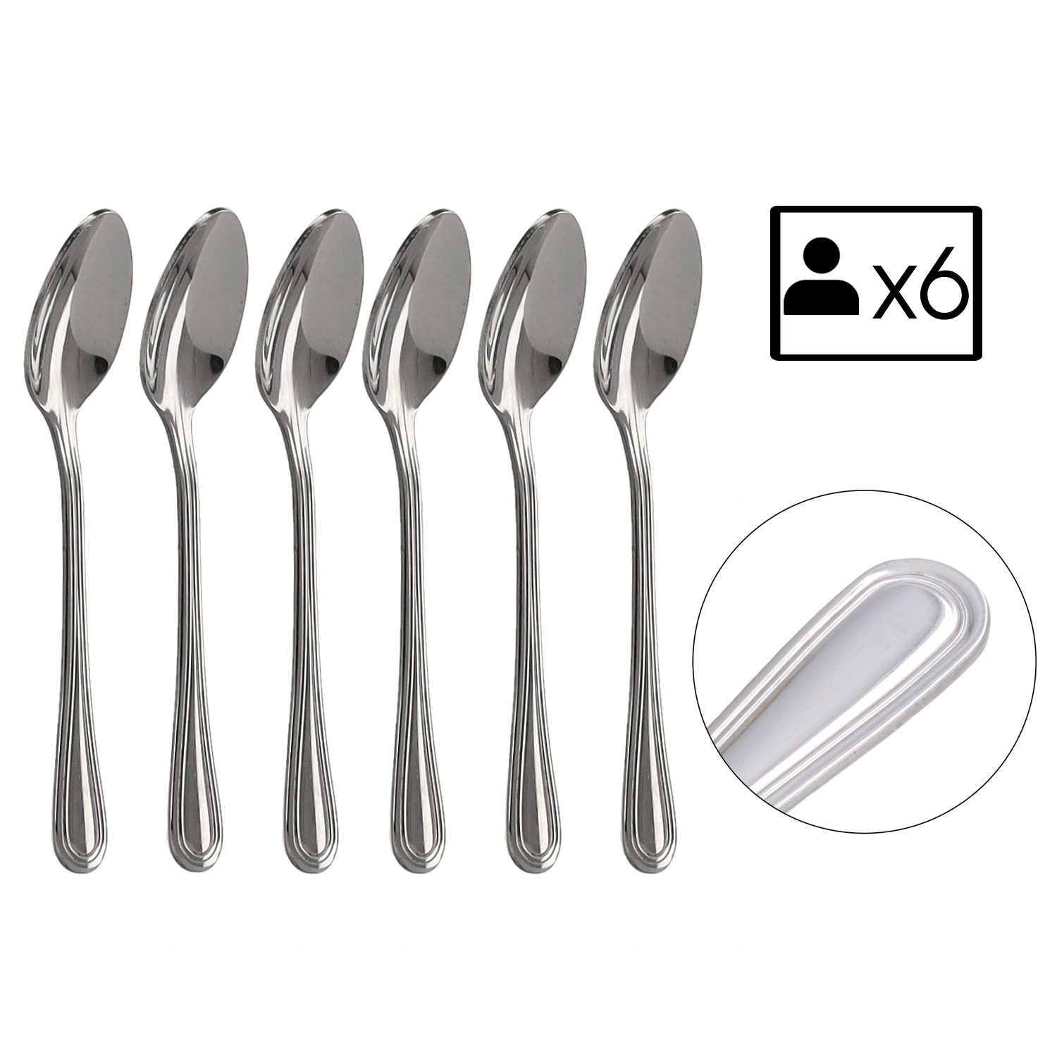 Sættet med mokkaskeer London kombinerer et klassisk udtryk med holdbart rustfrit stål, så det egner sig perfekt til både hverdagsbrug og festlige lejligheder. Den fine linje langs kanten giver bestikket diskret elegance, og det kan nemt matches med både moderne og traditionelt stel.