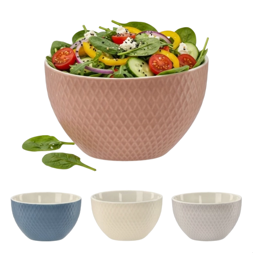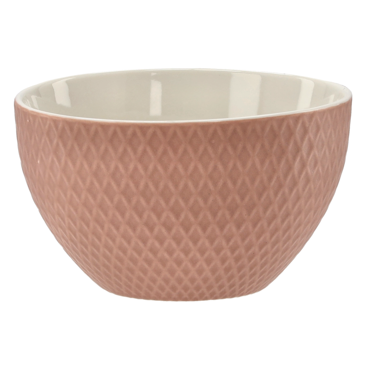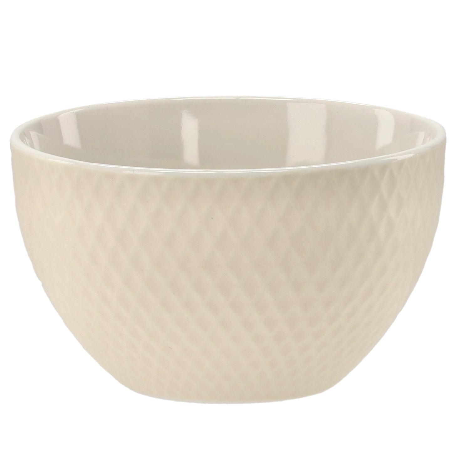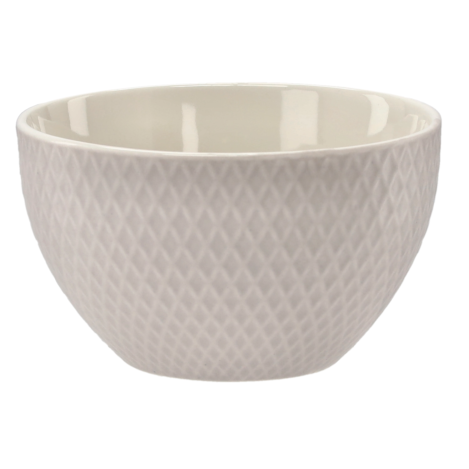 Med den alsidige kapacitet på 420 ml er skålen perfekt til supper, morgenmadsprodukter, salater og desserter. Den glatte glasur indvendigt muliggør hurtig rengøring og er behagelig ved servering. Den teksturerede ydre overflade med diamantmønster ser ikke kun godt ud, men forbedrer også grebet.