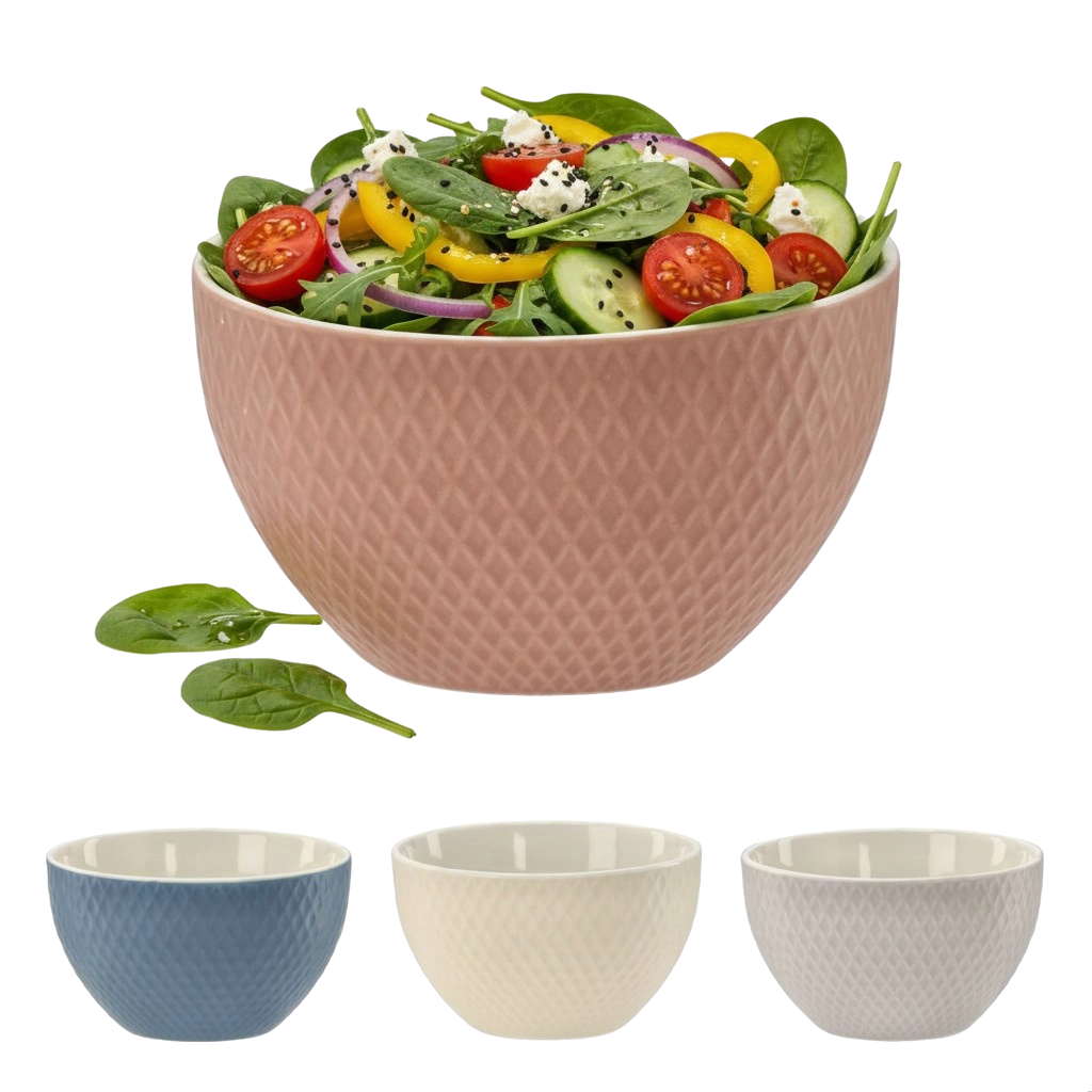 Den reliefprægede overflade øger både æstetik og funktionalitet – skålen ligger bedre i hånden og glider ikke, når du serverer supper, salater eller desserter.