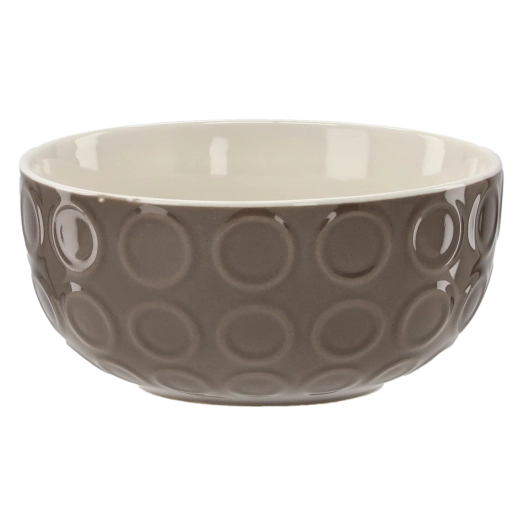 Oplev en alsidig skål, der kombinerer et elegant udtryk med praktisk anvendelighed. Med en diameter på 14 cm og et volumen på 550 ml er den perfekt til portioner af suppe, morgenmadsprodukter og små måltider. Det prægende cirkulære dekor giver skålen en unik karakter og sikrer samtidig et behageligt greb.