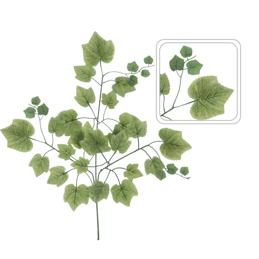 Den kunstige vinstokgren tilfører ethvert rum et naturligt look uden besvær med pleje. Realistiske blade og omhyggelig udførelse i kvalitets-syntetiske materialer sikrer modstandsdygtighed over for ydre påvirkninger og lang holdbarhed. Med de kompakte mål 69 × 57 cm passer den både til mindre og større dekorationer.