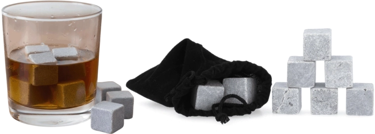 Ingen mere fortynding fra smeltende is. Whiskysten af naturlig sten køler effektivt din drink og bevarer samtidig den rene smag og duft. Med deres elegante udseende er de et flot supplement til hjemmebaren og en fremragende gave til enhver whiskykender.