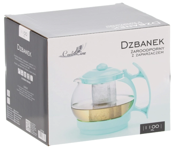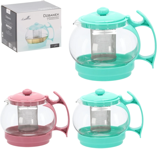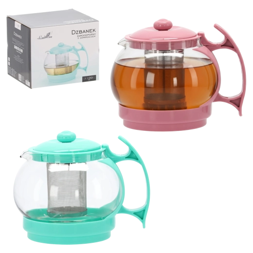 Elegant glaskande med kapacitet på 1,1 l og indbygget si er ideel til te- og urteelskere. Fremstillet af varmebestandigt glas, tåler høje temperaturer og sikrer sikker tilberedning af varme drikke. Takket være det ergonomiske håndtag og nem udskænkning er den daglige brug bekvem, mens det tidløse design flot komplementerer ethvert køkken.