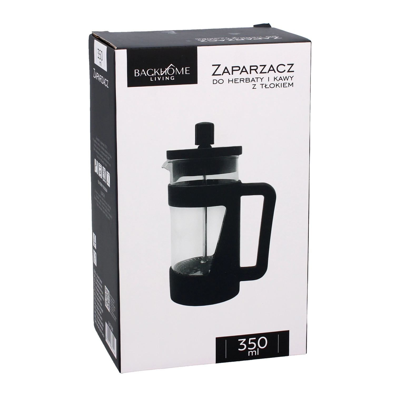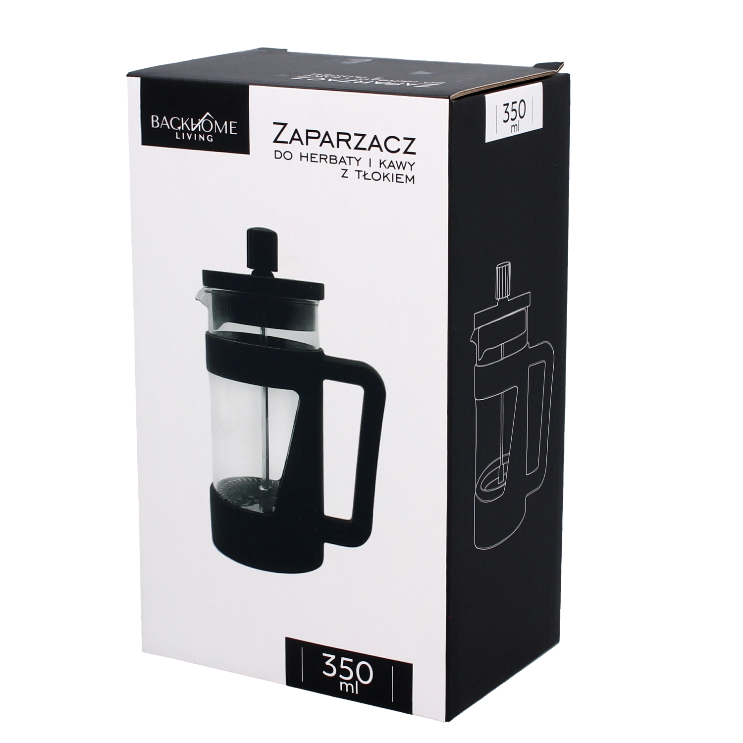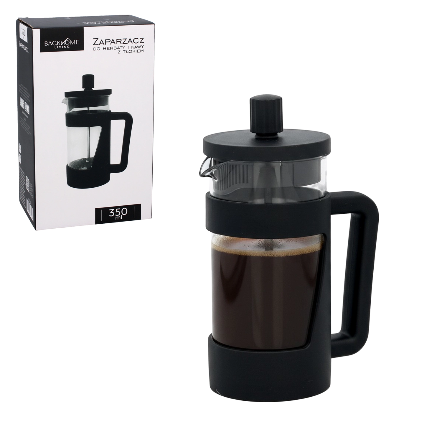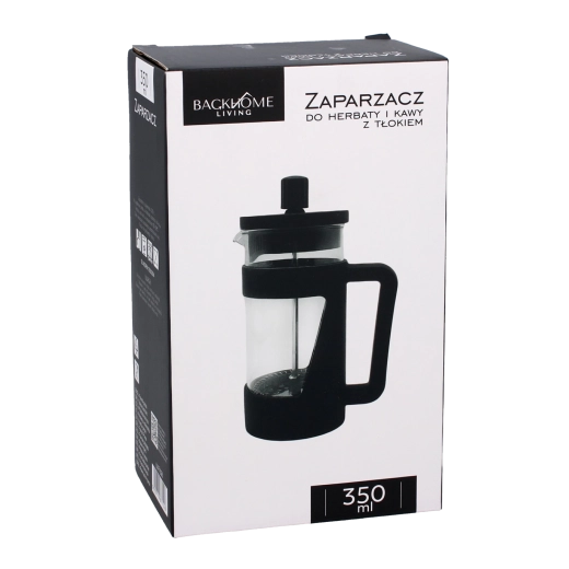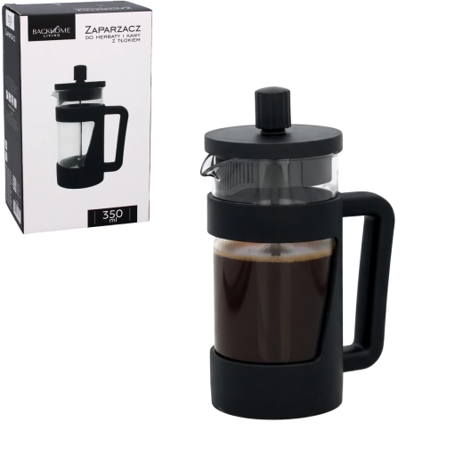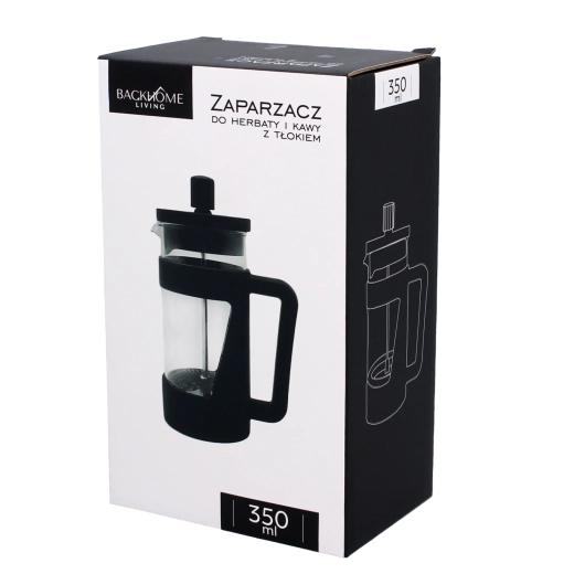 Praktisk stempelkaffebrygger med løftemekanisme, 350 ml, til hurtig tilberedning af aromatisk kaffe og te uden bundfald. Holdbart borosilikatglas og stempel i rustfrit stål med si sikrer en ren udtrækning og lang levetid. Den kompakte størrelse er ideel til 1–2 portioner derhjemme og på kontoret.