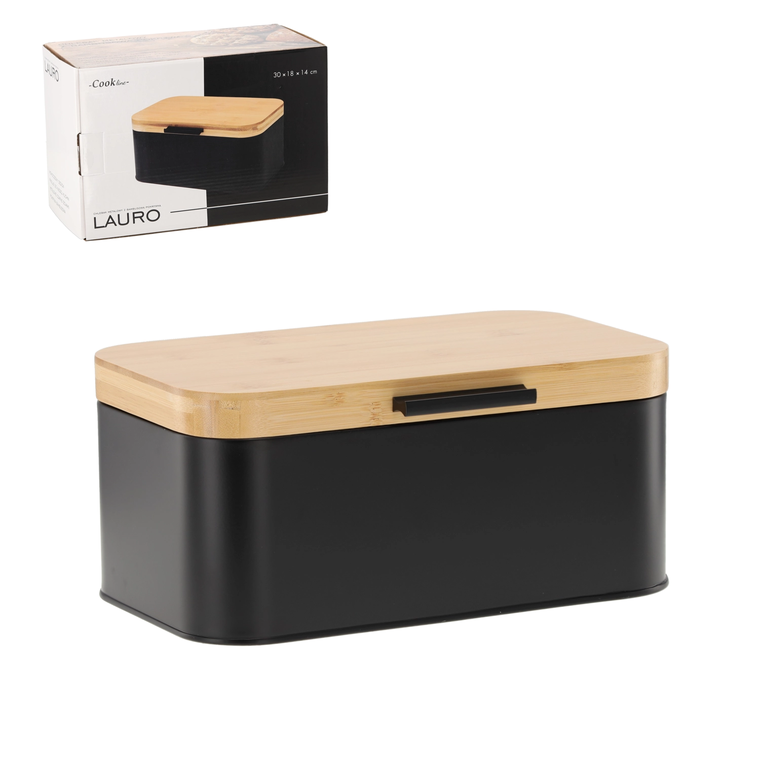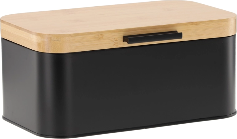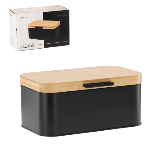Hold brød og bagværk friskt i længere tid og giv køkkenet både orden og stil med brødkassen Lauro. Den kombinerer mat sort metal og et naturbambuslåg for et moderne udtryk, er rumlig, holdbar og passer perfekt på enhver køkkenbordplade.