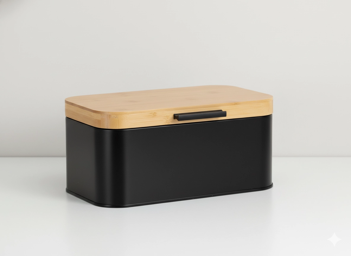 Mat sort metal med naturbambuslåg skaber et elegant og tidløst tilbehør, der løfter looket i ethvert køkken.