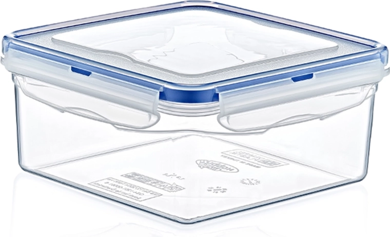 Praktisk beholder på 1,3 l til daglig opbevaring af madvarer. Takket være den firkantede form og målene 17 × 17 × 8 cm passer den nemt i både køleskab og fryser. De gennemsigtige sider gør det hurtigt at tjekke indholdet, mens fire solide klips og siliconepakning sikrer hermetisk lukning og længere friskhed. Tåler temperaturer fra -25 °C til +95 °C, så den er velegnet til fryser, mikrobølgeovn og opvaskemaskine.