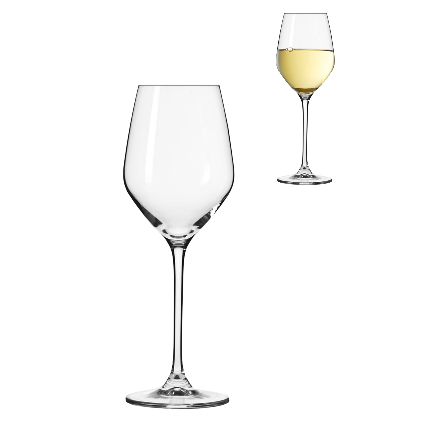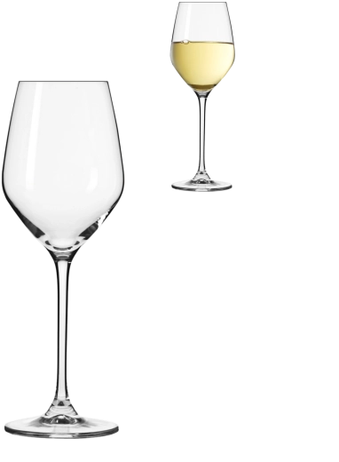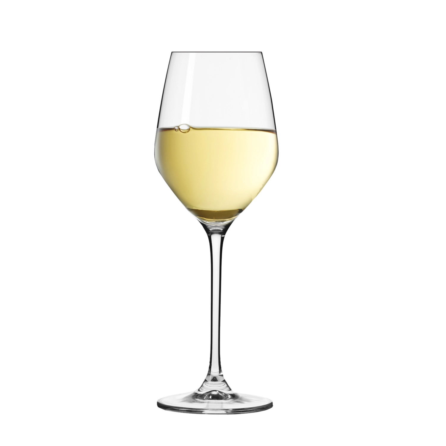 Den bredere kumme snævrer ind mod kanten, hvilket koncentrerer duftene og forbedrer smagsoplevelsen af hvidvin ved degustation.