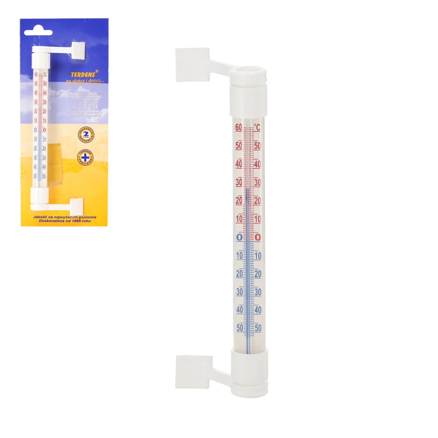 Leder du efter en enkel og pålidelig måde at følge udetemperaturen på? Dette lille udendørstermometer til vindue installeres på få øjeblikke takket være den vejrfaste klæbestrimmel – uden boring og uden at beskadige rammen. Kombinationen af sodaglas og UV-bestandig plast beskytter skalaen mod sol, frost og fugt.