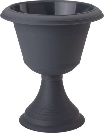 Elegant og holdbar blomsterpotte af kvalitetsplast i moderne antracitfarve består af to dele – skål og aftagelig fod. Takket være den enkle, glatte udformning passer den perfekt både inde og ude: i hjemmet, på terrasser, altaner, i haver og på kirkegårde. Den er let, nem at rengøre og muliggør brug af dræn for sundere plantevækst.