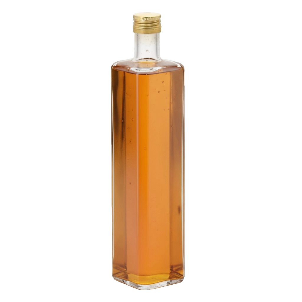 Elegant glasflaske med en kapacitet på 750 ml, ideel til hjemmelavede juicer, sirupper, likører og olier. Det kvalitetsklare glas muliggør en æstetisk præsentation af indholdet, mens det gyldne metalskruelåg sikrer en helt tæt lukning uden lækage. Det moderne, slanke design passer både i køkkenet og på bordet, og genbrug er en miljøvenlig alternativ til plast.