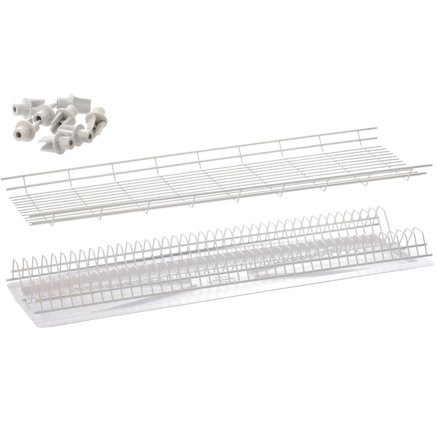Praktisk todelt drypbakke ANDER til et køkkenskab med en bredde på 80 cm sparer plads og holder orden på køkkenbordet. Den tilbyder rigelig plads til tallerkener, krus og bestik, er fremstillet af holdbart metal med polymerbelægning, og der medfølger en plastisk drypbakke for nem vedligeholdelse. Hvid farve passer til de fleste køkkener.