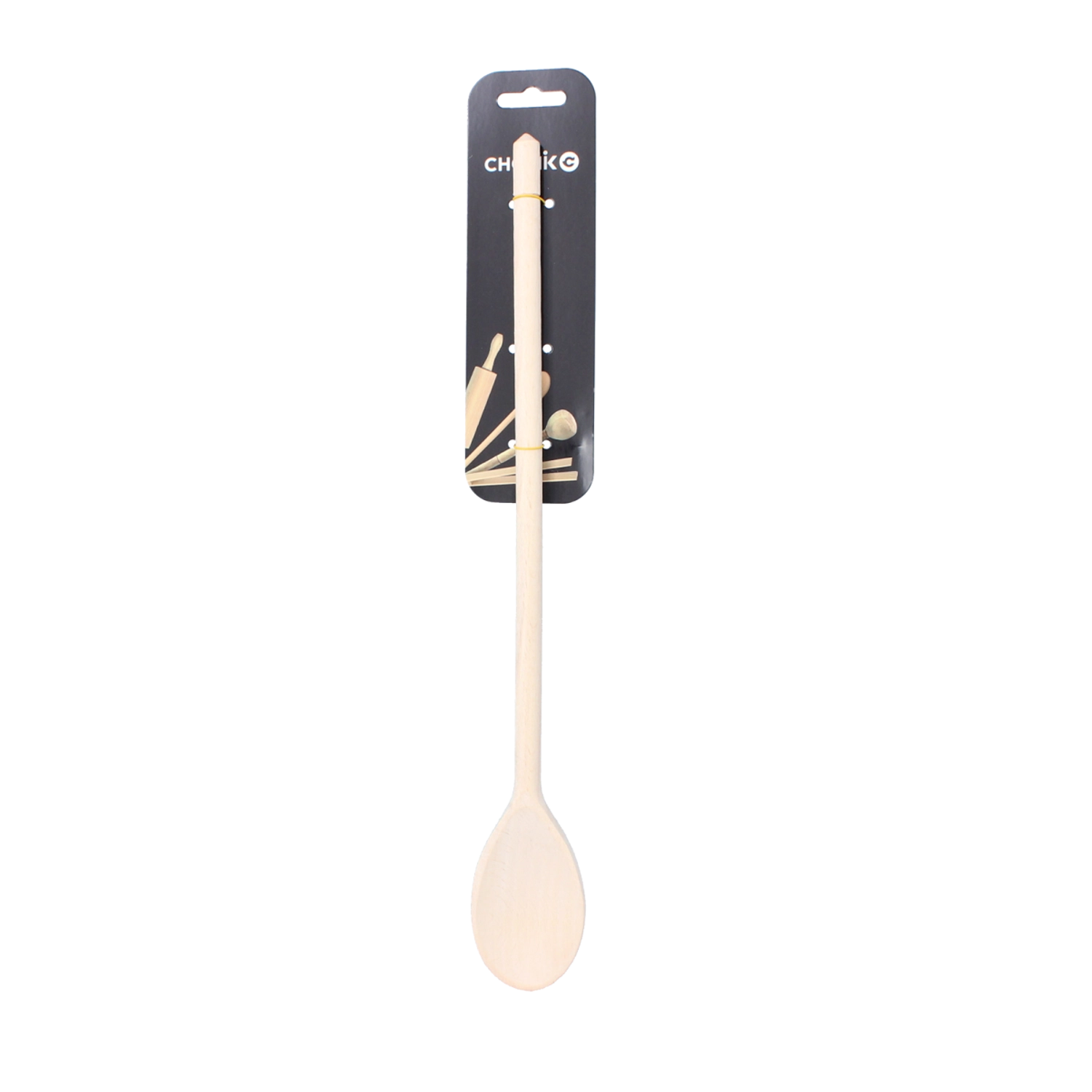 Praktisk svensk træske på 40 cm, perfekt til daglig madlavning. Takket være længden og den ergonomiske form tilbyder den behagelig omrøring, opskubning og smagning. Den er lavet af naturligt bøgetræ, som er skånsomt mod køkkengrej og sikkert til kontakt med fødevarer – ideel også til teflon- og keramiske overflader.