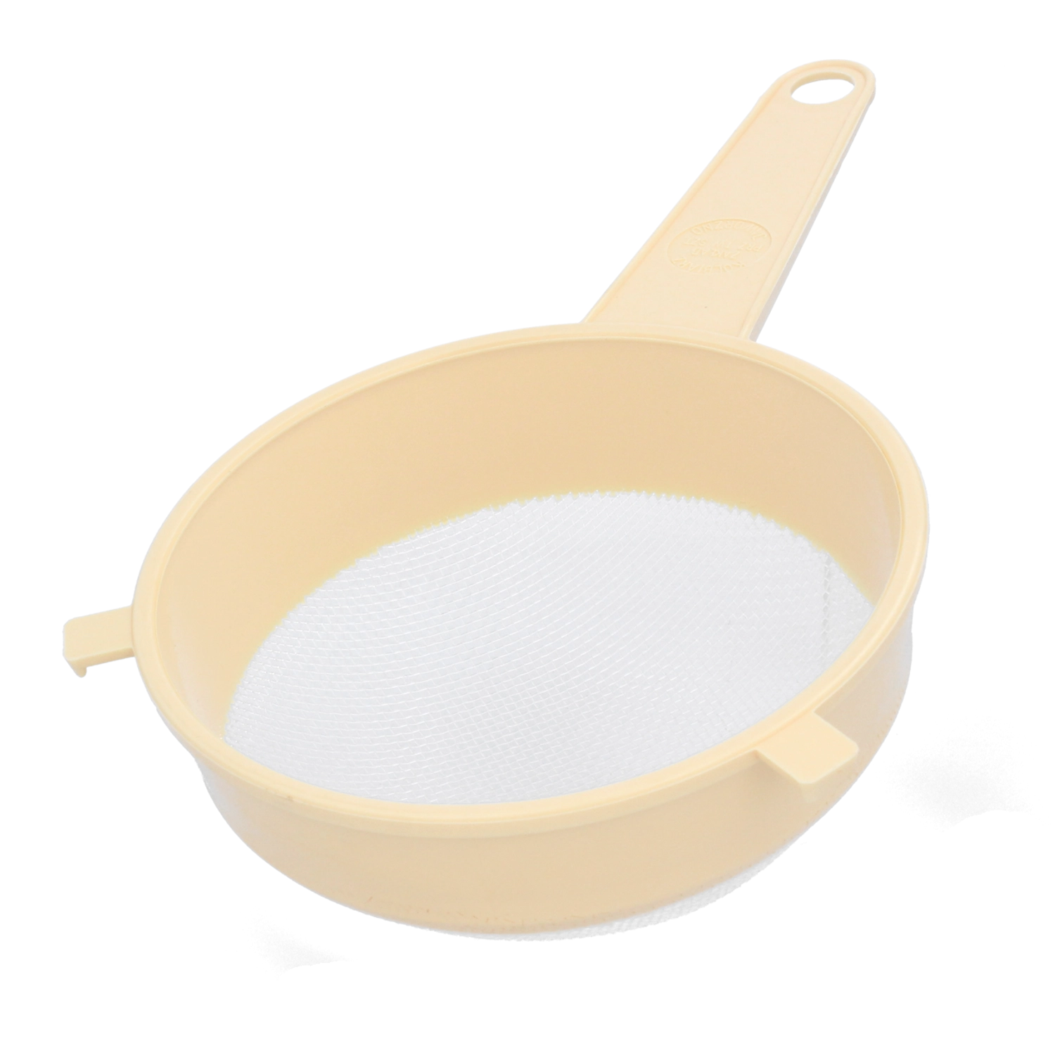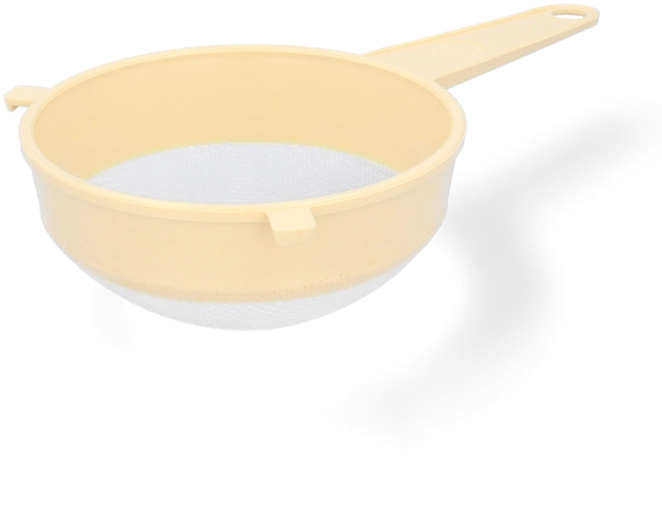 Det alsidige køkkensi af robust plast er en uundværlig hjælper til hurtig og ren afdrypning og sigtning. De kompakte mål sparer plads i skabe og skuffer, mens de ergonomiske håndtag giver et sikkert greb under arbejdet.