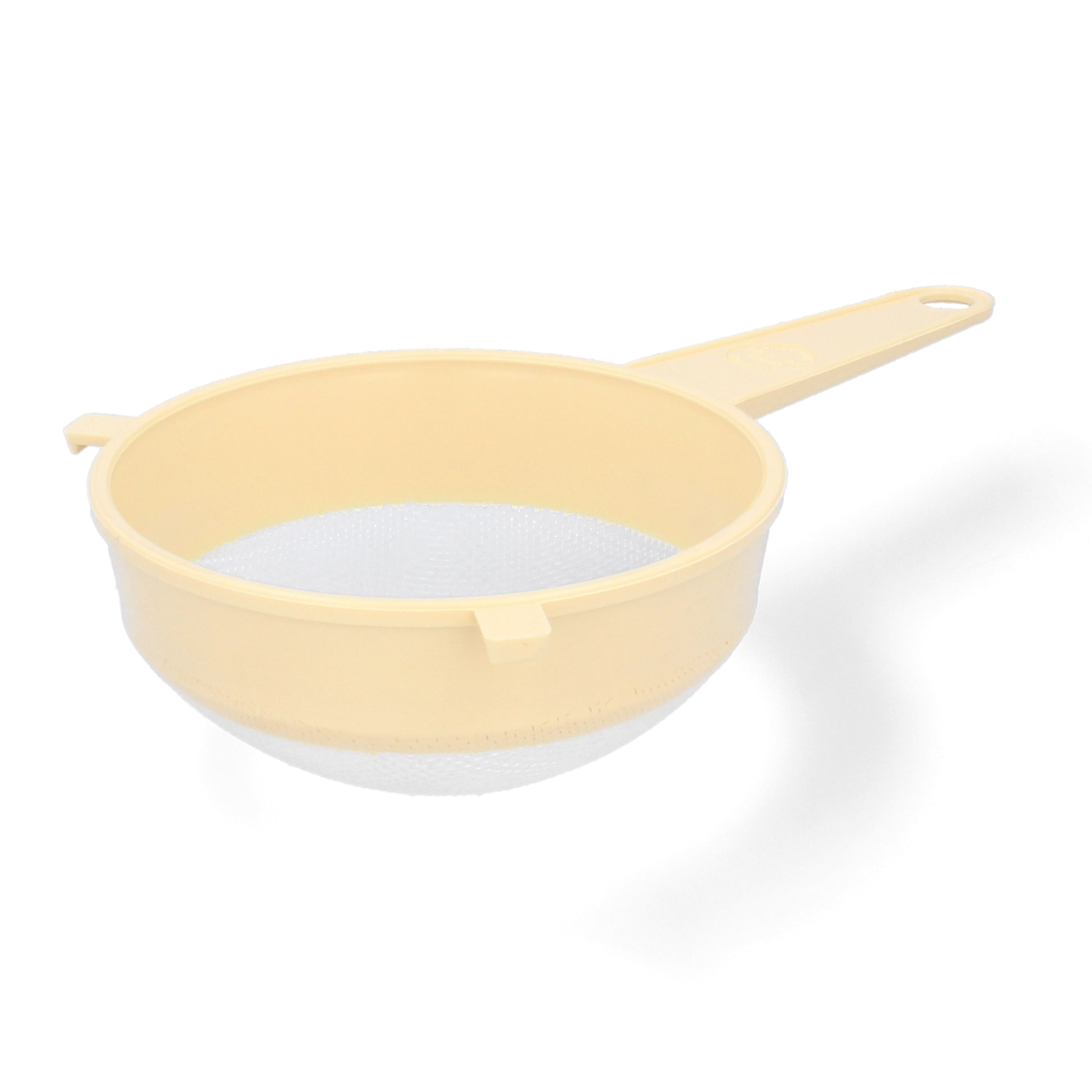 Praktisk plastisk køkkensi med en diameter på 16 cm er ideel til daglig brug – perfekt til at si frugt og grøntsager, sigte mel og hælde vandet fra pasta. Takket være den letvægtige konstruktion og ergonomiske håndtag er den nem at håndtere, og det holdbare plastmateriale sikrer lang levetid og nem rengøring i opvaskemaskinen.