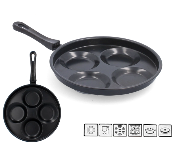 Praktisk æggepande med en diameter på 24 cm i holdbart kulstofstål med nonstick-belægning for nem stegning uden fastbrænding. Et ergonomisk plasthåndtag sikrer et behageligt og sikkert greb, mens den udvendige varmebestandige overflade øger holdbarheden ved daglig brug.