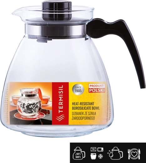 Elegant og let kande TERMISIL Ewa med en kapacitet på 2,1 l, fremstillet af højkvalitets borosilikatglas, er ideel til daglig brug. Tåler temperaturer fra -50 °C til +500 °C, så den er velegnet til både køleskab og fryser og kan også bruges på elektriske komfurer. Materialet er kemisk inert, påvirker ikke smag eller duft af drikke, er ridsefast og sikker til opvaskemaskine.