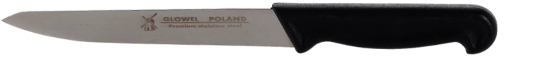 Universalkøkkenkniv GLOWEL med 15 cm klinge af kvalitetsrustfrit stål X50CrMoV15 tilbyder langvarig skarphed, høj korrosionsbestandighed og behagelig, sikker håndtering takket være det ergonomiske plasthåndtag. Velegnet til skæring af kød, grøntsager og frugt og kan tåle opvaskemaskine for nem vedligeholdelse.