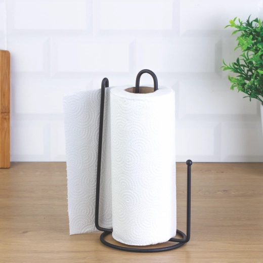 Den stabile, cirkulære base med en diameter på 15 cm giver pålidelig støtte selv ved hurtig brug. Højden på 32,5 cm er ideel til standardstørrelser af ruller, så holderen passer perfekt ind i hverdagens rutiner. Det minimalistiske look i loft-/industriel stil kan nemt kombineres med både moderne og rustikke køkkener.