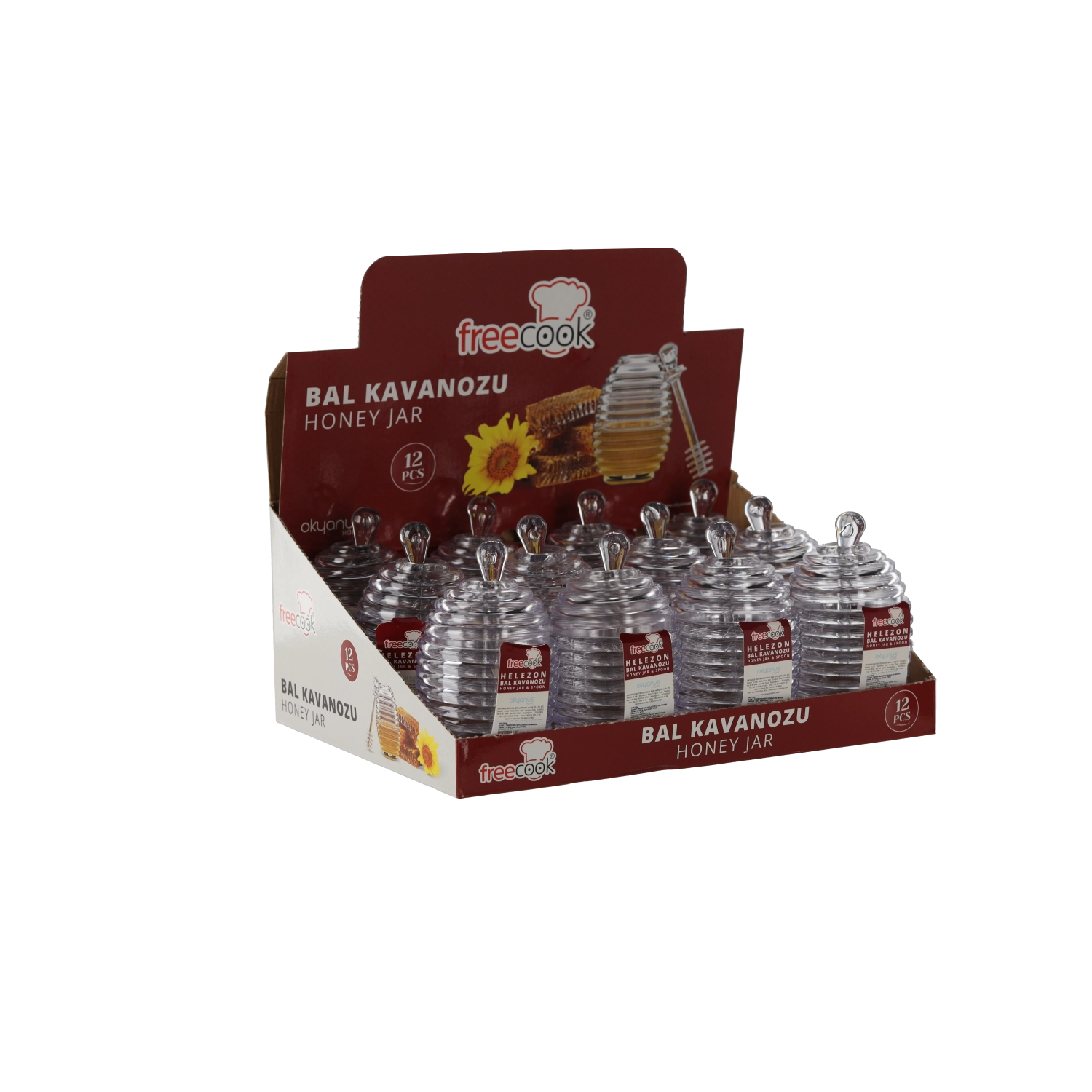 Denne kompakte beholder er fremstillet af kvalitetsplast og er designet til at bevare honningens friskhed og duft. Den inkluderer en praktisk honningske, så du kan tage honning nemt uden unødigt spild. Dekor i form af en bikube giver beholderen et attraktivt udseende og pynter på enhver køkkenhylde.
