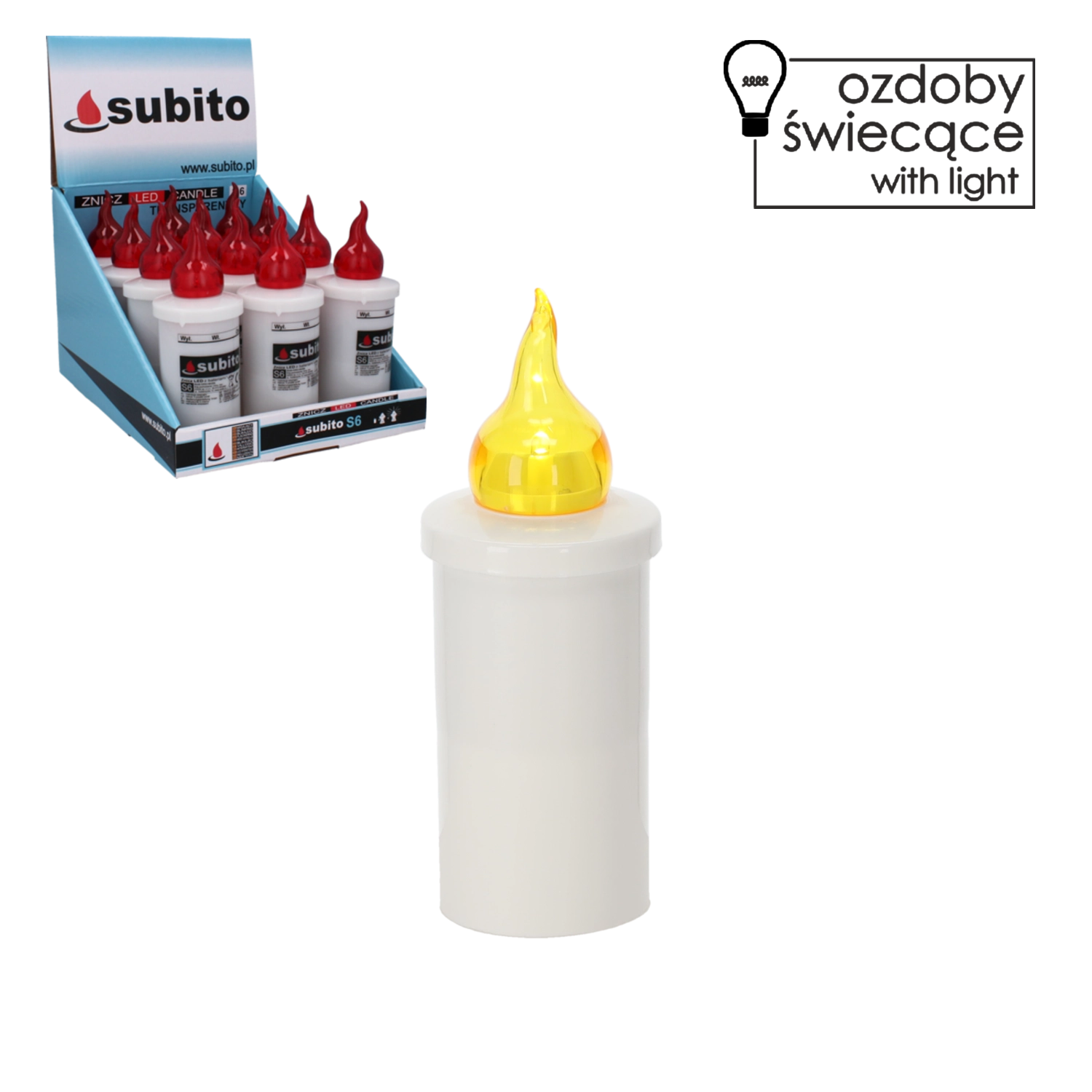 Det enkle hvide korpus med gul flamme passer ind i både moderne og klassiske interiører, til dekoration og mindeformål.