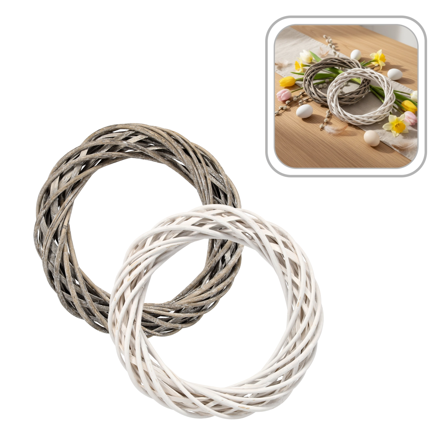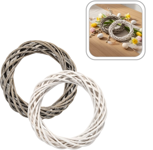 Den neutrale hvide eller grå farve og det rene flettede design er ideelle som base for DIY-dekorationer – tilføj blot blomster, bånd eller sæsonpynt.