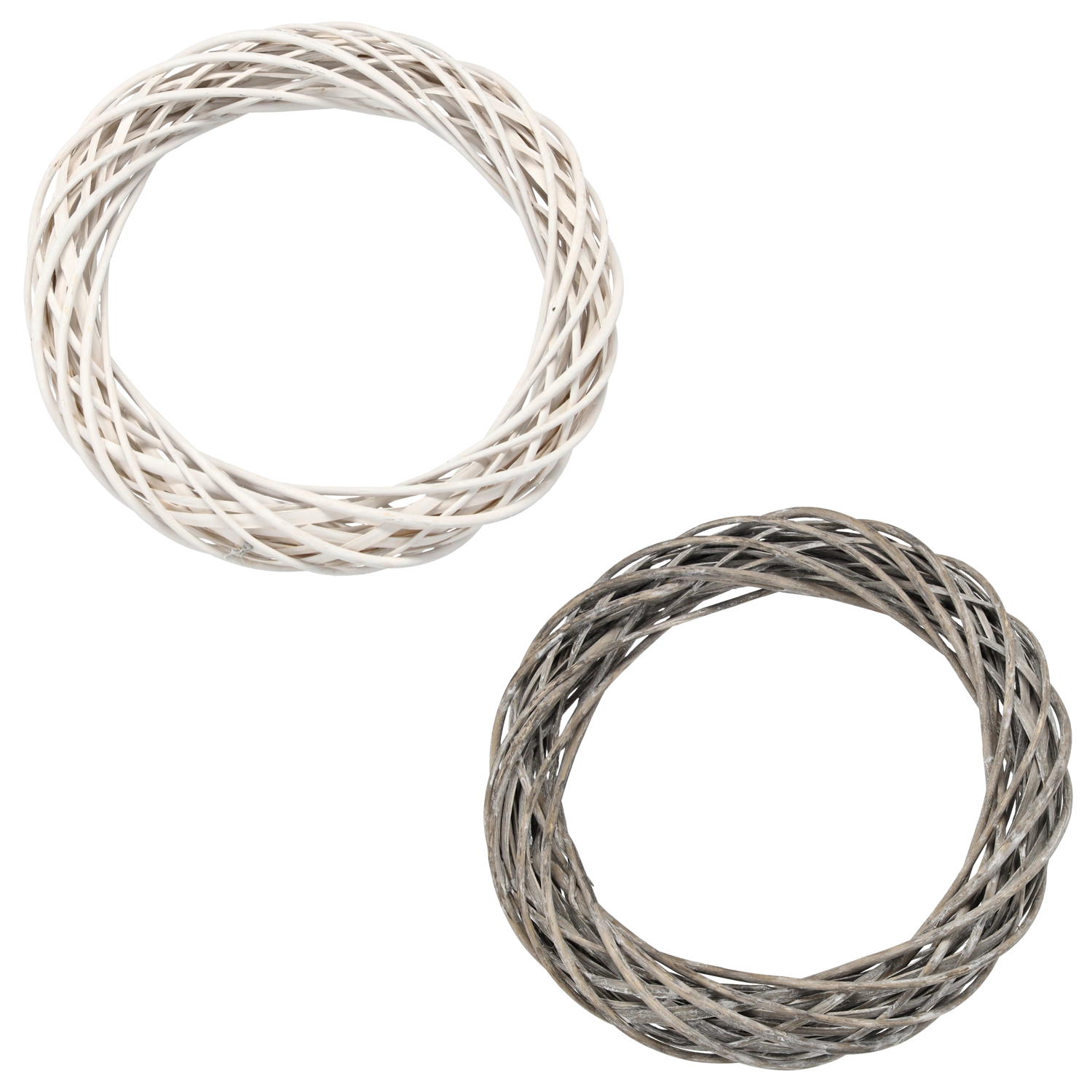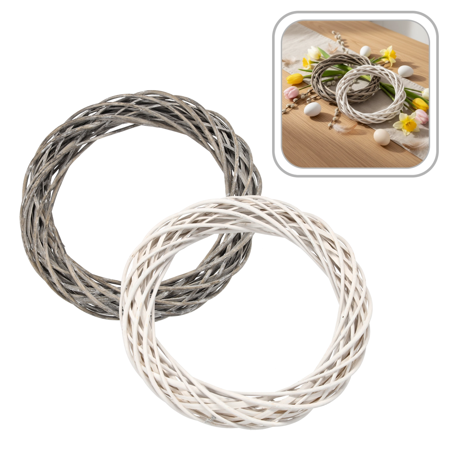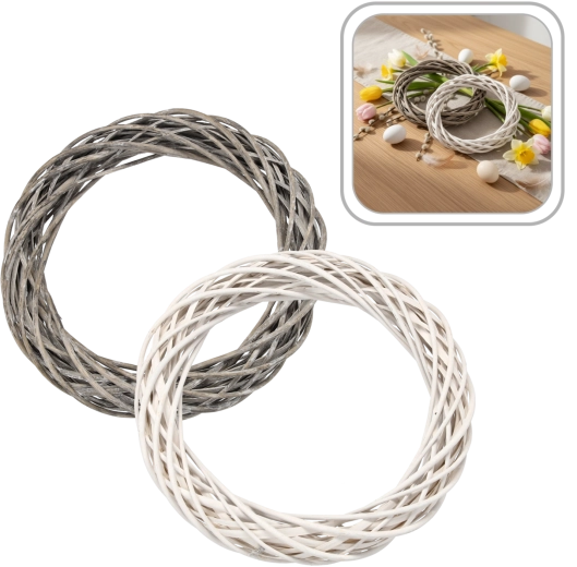 Denne runde krans af naturlig flet/pil har en solid konstruktion og et rent, tidløst udtryk. De neutrale nuancer hvid og grå passer til de fleste stilarter – fra skandinavisk over rustik til moderne minimalisme. Takket være den robuste udførelse egner den sig til døre, vægge og borde, både inde og ude.