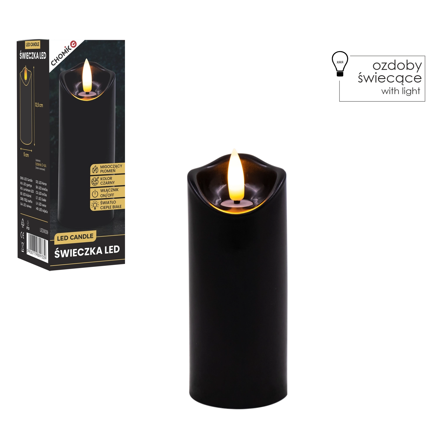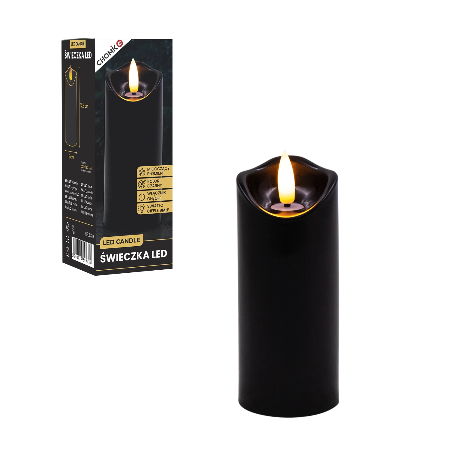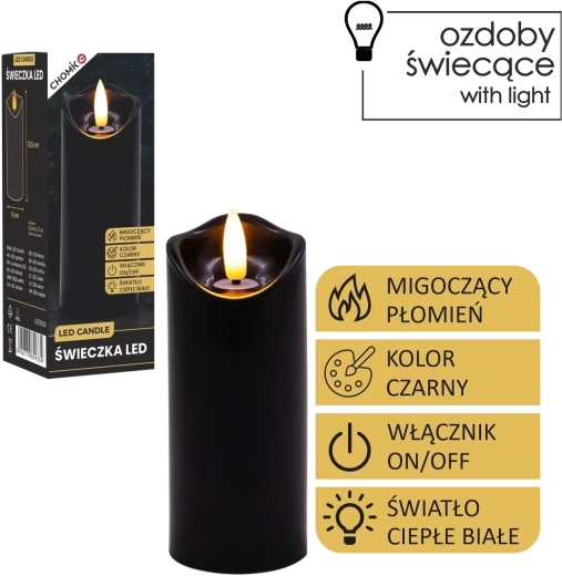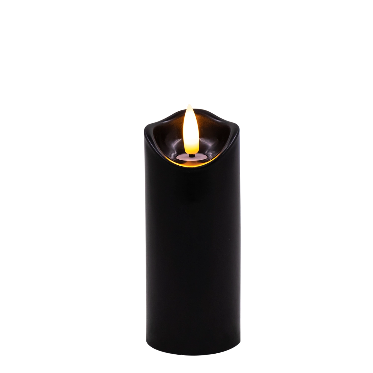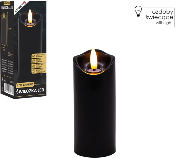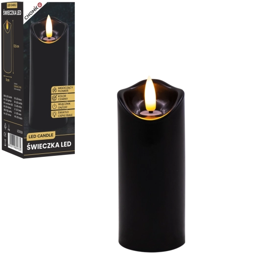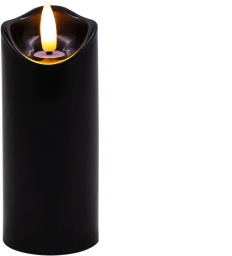 Skab behageligt lys når som helst og hvor som helst. Dette sorte LED-lys i størrelsen 5 × 12,5 cm lyser i varm hvid og takket være den realistiske flammeflimren efterligner det en ægte stearinlysflamme – uden rod, lugt og risikoen ved åben ild.