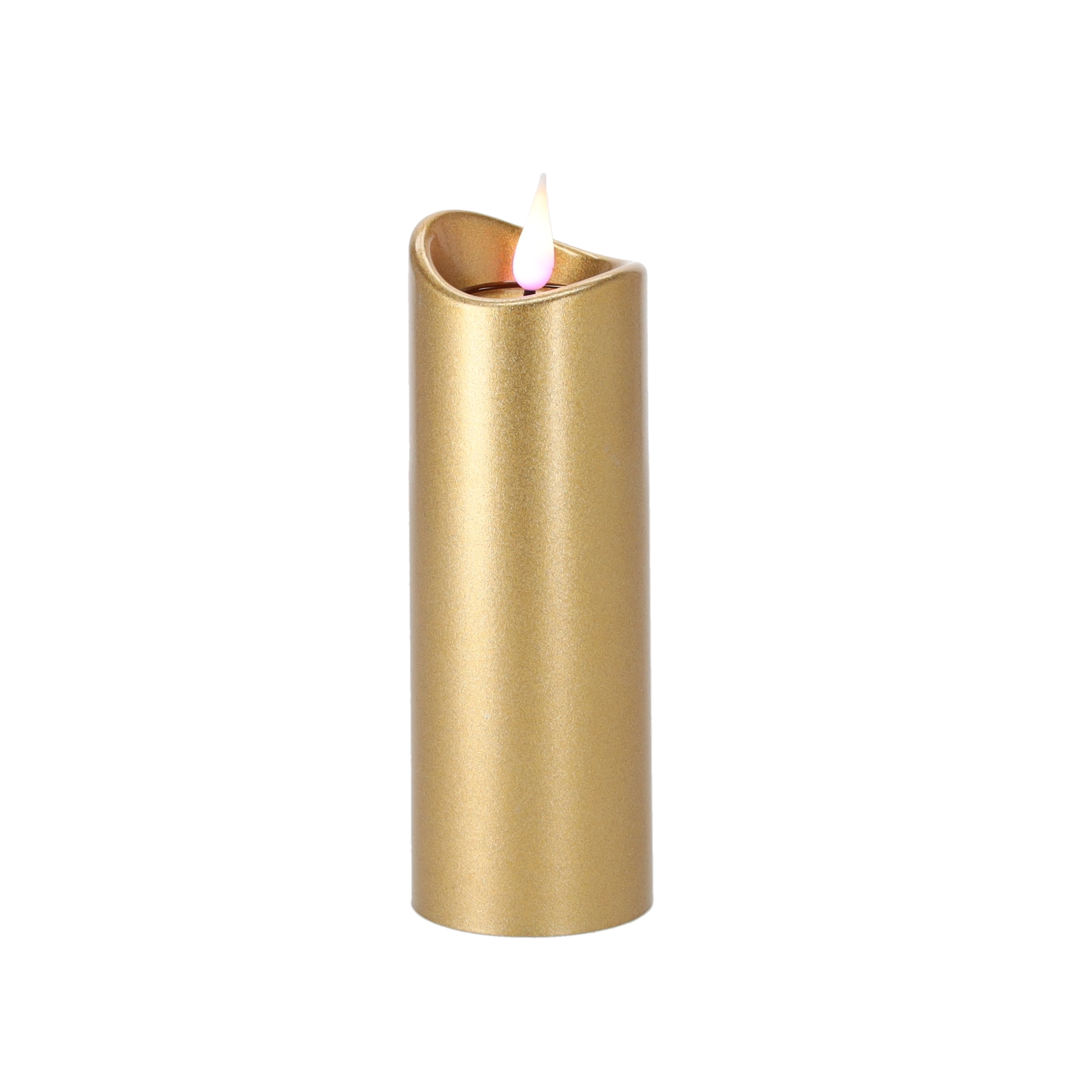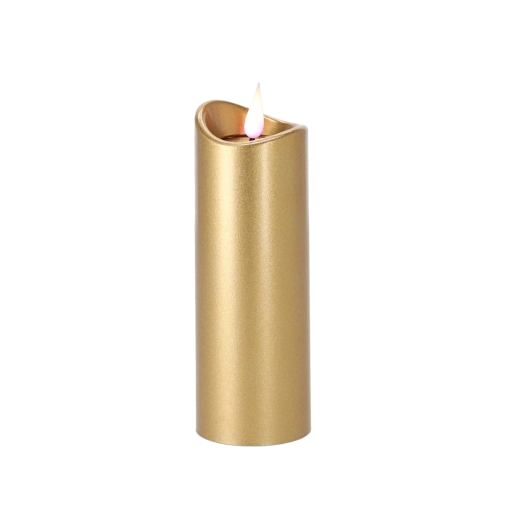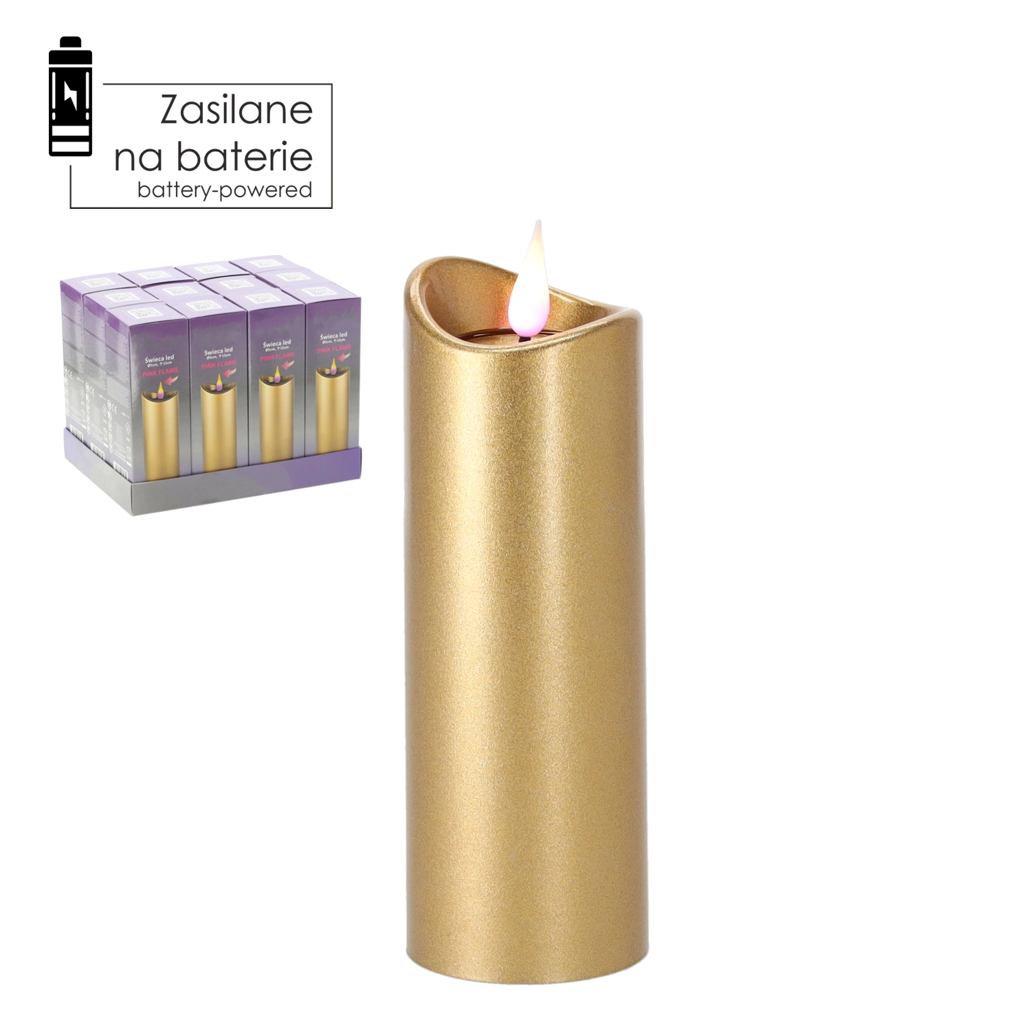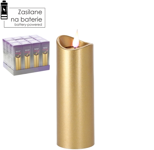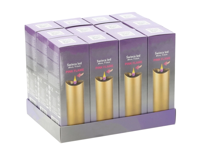 Elegant LED-lys i størrelsen 5 × 15 cm i luksuriøs guldfarve med effekt af en lyserød flamme. Byder på sikker, langvarig og energibesparende belysning takket være batteridrift, hvor batterier medfølger. En fremragende dekoration til hjemmet og til mindesteder.