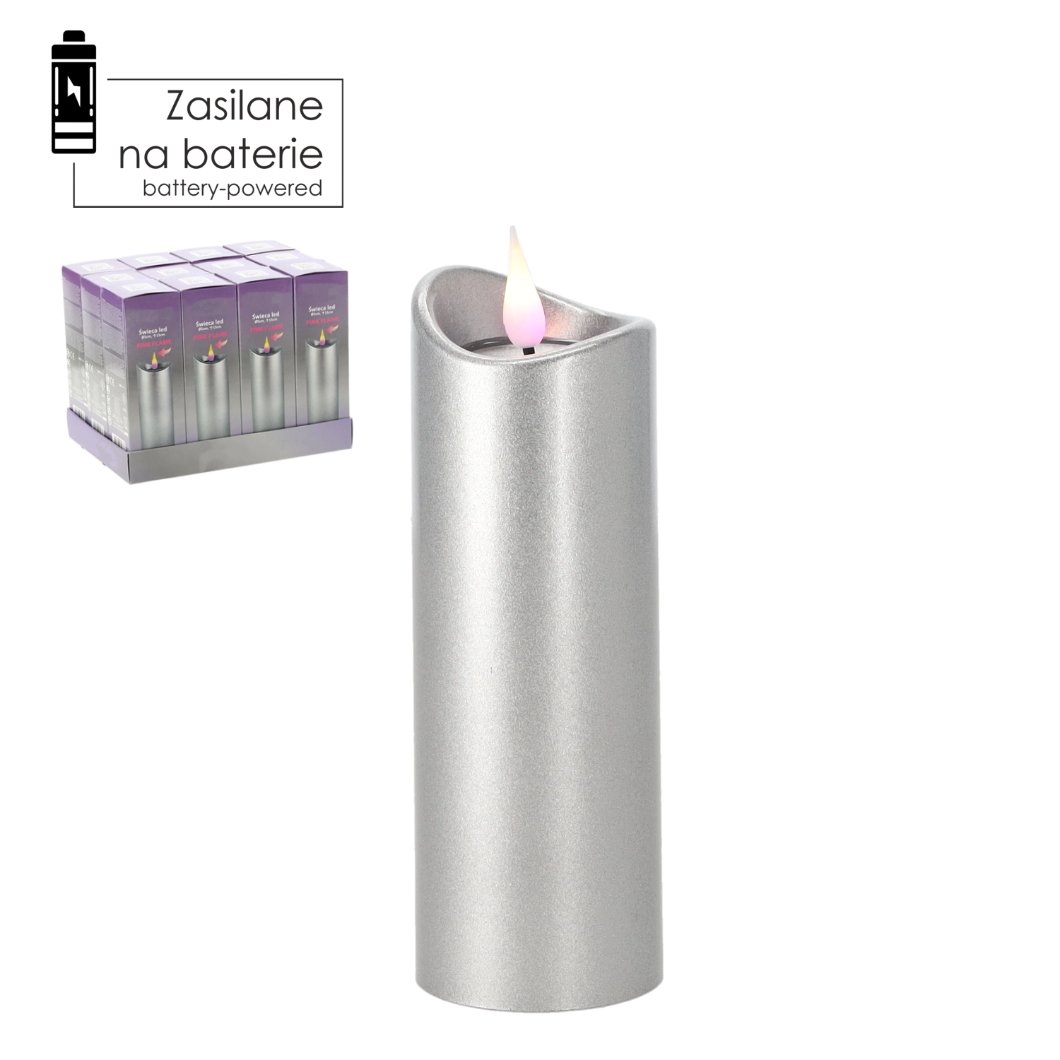 Skab en hyggelig atmosfære med et stilfuldt LED-lys, der kombinerer et moderne sølvdesign og en unik lyserød flamme. Takket være batteridrift er lyset sikkert, uden risiko for forbrændinger eller røg, og giver alligevel en naturlig lyseffekt.