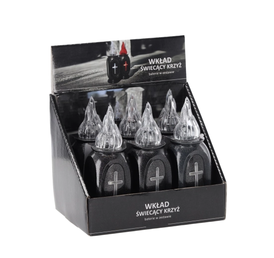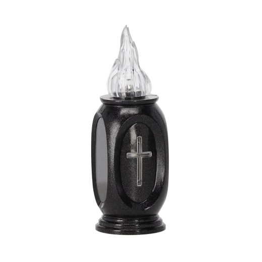 LED‑indsatsen Vaso kombinerer et diskret design i granitlook med et lysende korsmotiv. Takket være LED‑teknologi tilbyder den energibesparende drift, stabilt lys og minimal opvarmning, hvilket gør den egnet til de fleste klassiske og moderne lanterner og stager.