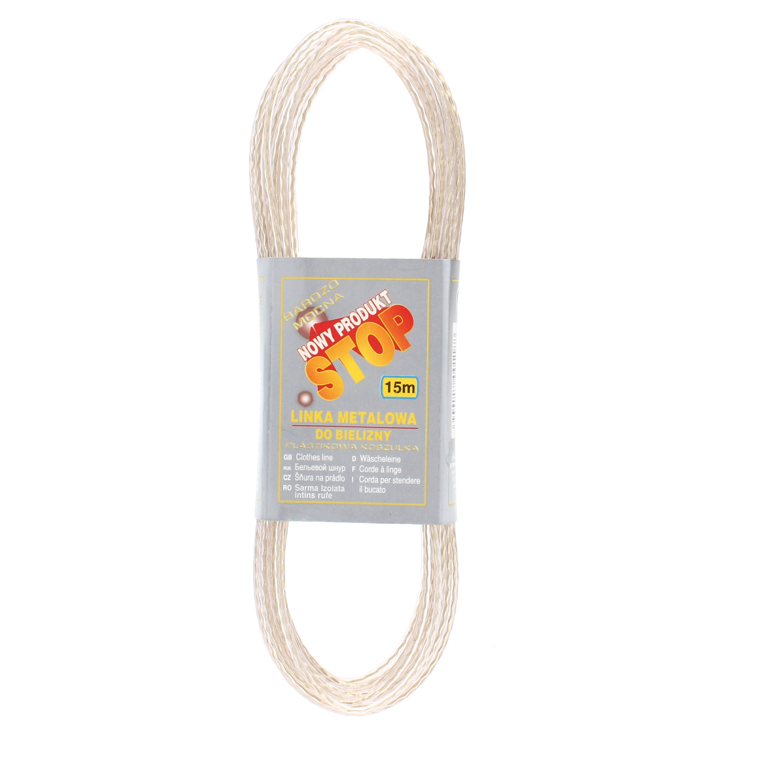 Leder du efter en pålidelig tøjline, der tåler daglig brug og ikke giver efter for vejret? Den 15 meter lange metaltøjline kombinerer stålets styrke med en beskyttende plastbelægning, så den er robust, hygiejnisk og skånsom mod tøjet. Den beige farve passer let ind i de fleste interiører og udendørsmiljøer.