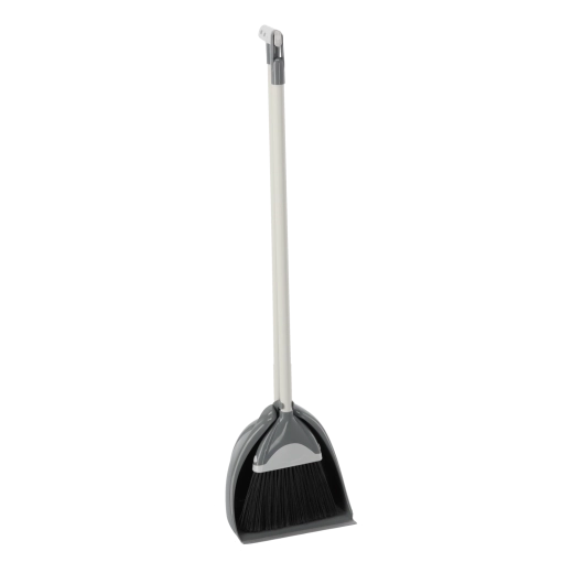 De lange skafter på både kost og fejebakke gør det muligt at feje stående, hvilket skåner ryggen og øger komforten ved den daglige rengøring.