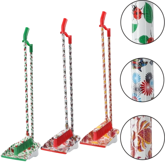 Sættet er velegnet til fliser, vinyl, laminat og trægulve. Bløde, men effektive børster opfanger støv og småpartikler, mens fejebakken med forhøjet kant gør det nemt at samle smulder rent op.