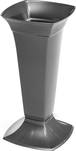 Den elegante gravflakon LAMELA Etna i farven grafit-metallic er en stilfuld vase med græsk ornamentik til en værdig udsmykning af grave. Den er fremstillet af slagfast plast med beskyttelse mod UV-stråling og frost, så den falmer ikke og bevarer sit udseende i lang tid. Den stabile form sikrer sikker placering af blomster og nem vedligeholdelse.