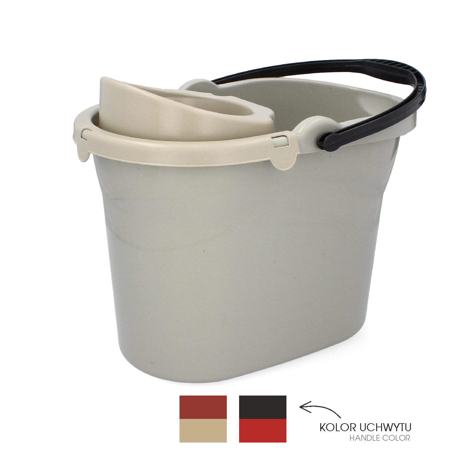 Takket være det ergonomiske håndtag bæres spanden nemt, også når den er fyldt med vand. Den specialformede hældetud på kanten muliggør præcis udhældning uden dryp og rod. Det ovale og kompakte design sparer plads ved opbevaring og passer nemt i skabe eller rengøringsnicher.