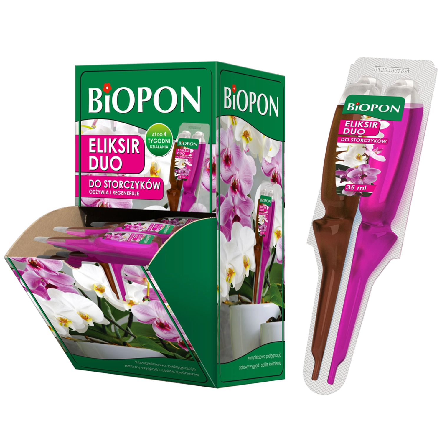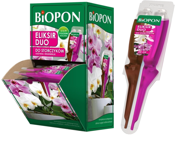 Genopret vitaliteten i dine orkidéer med Biopon Eliksir Duo – en to-komponent eliksir til hurtig regenerering, fremme af vækst og blomstring samt reduktion af stress efter omplantning. Den smarte todelte applikator sikrer altid den rette dosis nærings- og regenererende stoffer til alle typer orkidéer.
