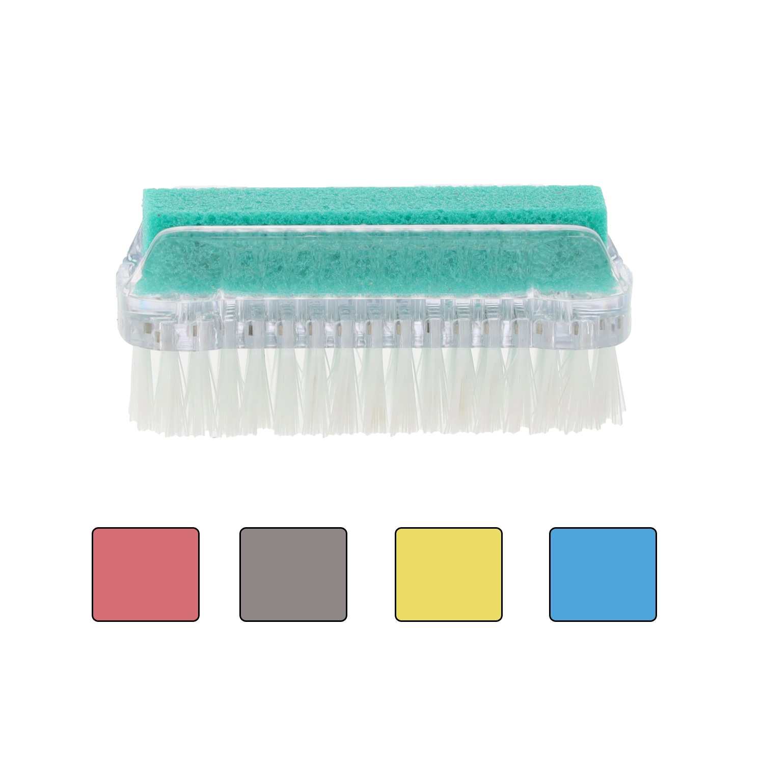 En praktisk håndbørste med integreret pimpsten fra Sanel, der giver grundig rengøring af hænder og negle samt skånsom fjernelse af hård hud. Takket være de tætte syntetiske børster, det ergonomiske design og det riflede greb er den behagelig at bruge og glider ikke ud af hånden. De holdbare materialer sikrer en lang levetid, og børsten leveres i et farvemix afhængigt af tilgængelighed.