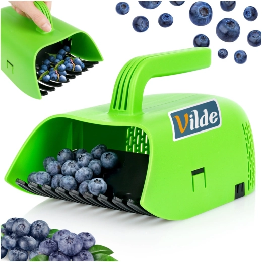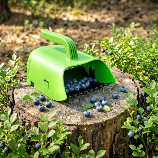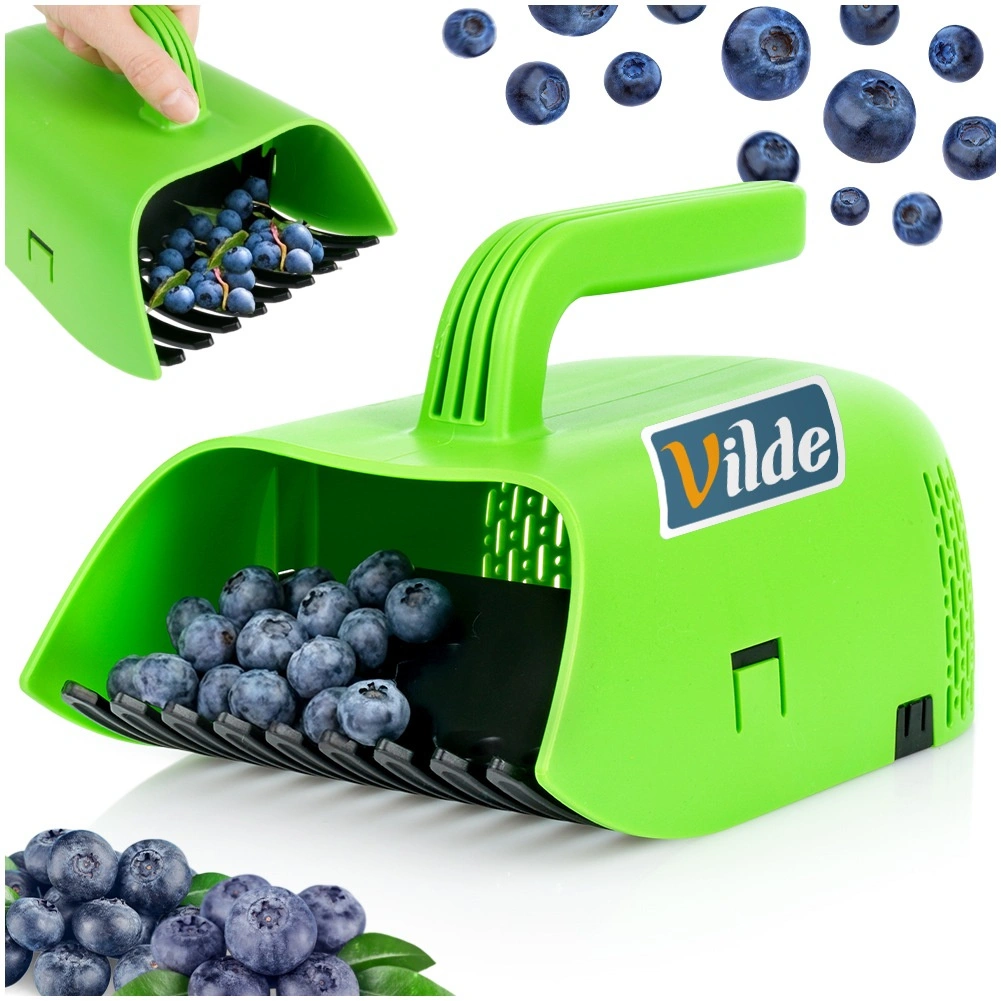 Praktisk bærplukker til hurtig og bekvem høst. Takket være det ergonomiske håndtag og den særlige kam adskilles bærrene let fra stilkene, mens bærrene forbliver sikkert inde i beholderen. Den lette og holdbare plastkonstruktion i grøn med sort kam er nem at betjene og rengøre og egner sig perfekt til blåbær, ribs, aronia og skovbær.