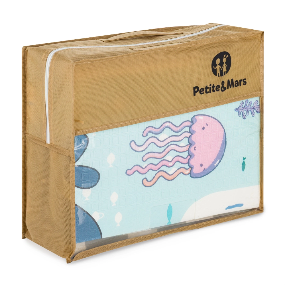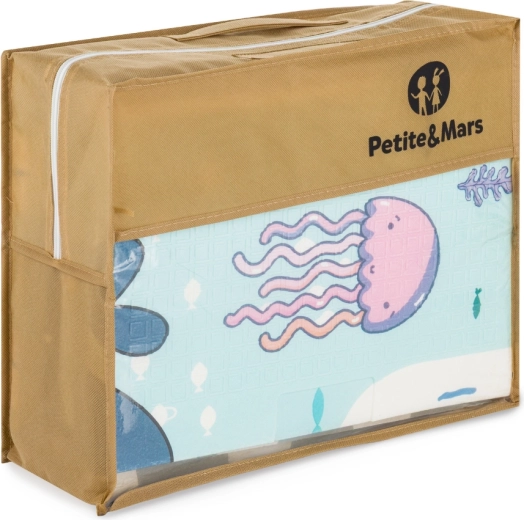 Måtten PETITE & MARS Campy S giver børn et behageligt og sikkert sted til leg, kravlen og de første skridt. Det dobbeltsidede print med motiverne Ocean og Arabesca liver ethvert børneværelse op og passer samtidig ind i et moderne interiør. Overfladen med skridsikker behandling hjælper barnets stabilitet, og skumkernen af XPE-materiale dæmper stød og isolerer mod kolde gulve.