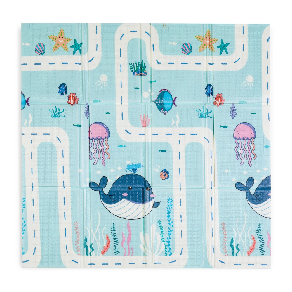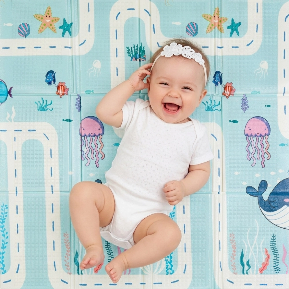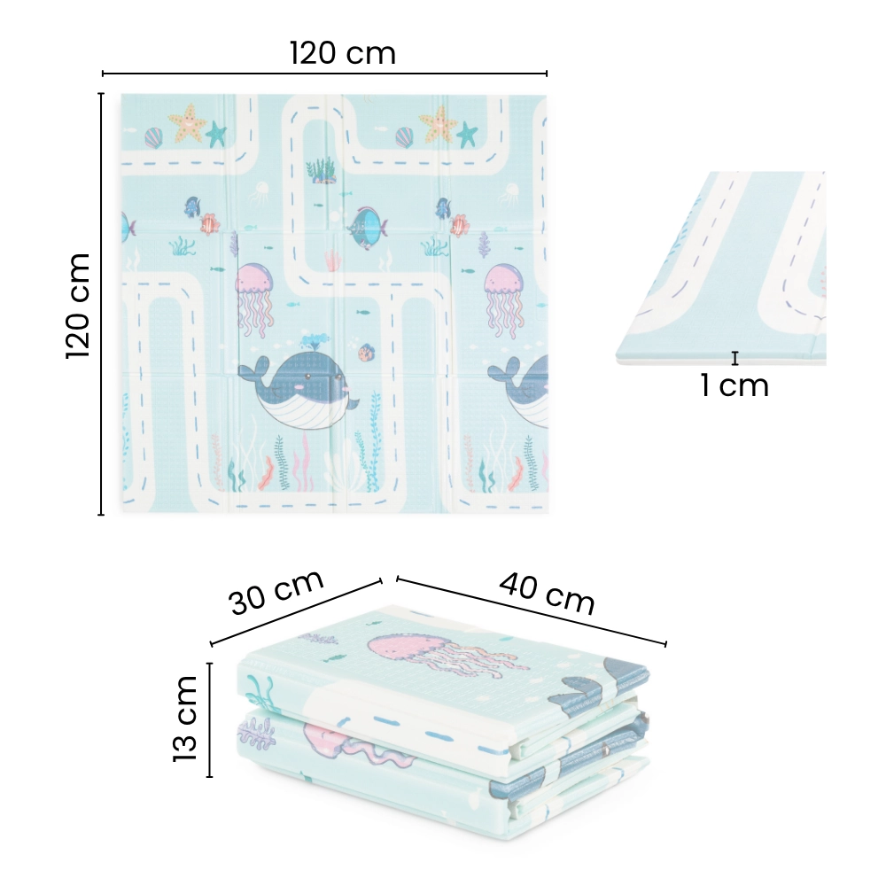 Dobbeltsidet, sammenklappelig legeplade af ikke‑giftigt XPE-skum giver en blød og sikker overflade til leg fra nyfødt. Den har skridsikker overflade, er vandtæt, nem at rengøre og isolerer fremragende mod kulde og snavs. Takket være lav vægt og hurtig sammenklapning kan den let bæres i den medfølgende praktiske taske – ideel både hjemme og i haven.