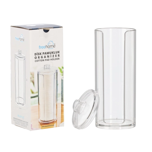 Opbevar dine kosmetiske vatrondeller overskueligt og stilfuldt. Denne plastbeholder er let, holdbar og nem at vedligeholde. Det minimalistiske design er let at kombinere med andre badeværelsestilbehør.